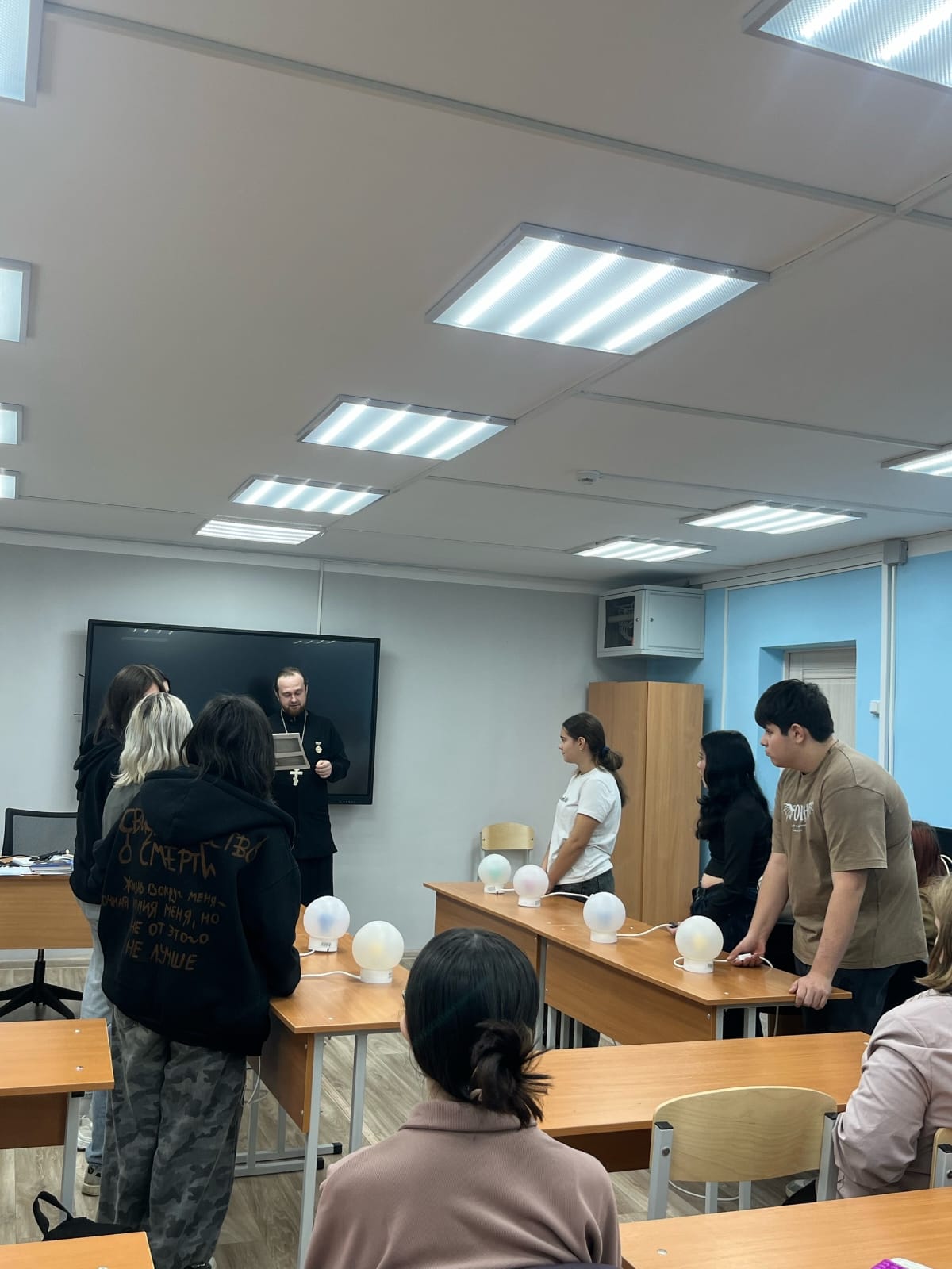 13 ноября 2025 года в Киржачском колледже технологии и сервиса состоялась встреча помощника благочинного по работе с молодежью, священника Дмитрия Чибескова со студентами первого курса. Мероприятие, посвященное теме «Значение духовно-нравственного человека в современном обществе», прошло в формате живого диалога.