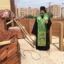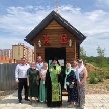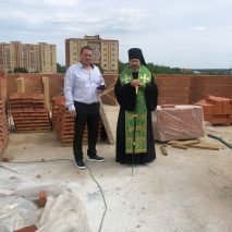 В часовне Владыка совершил благодарственный молебен. Затем Архипастырь ознакомился с ходом строительных работ и пообщался с ктиторами храма.
