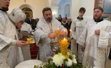 Его Преосвященству сослужили: секретарь епархиального управления иерей Антоний Чуть и духовенство собора.