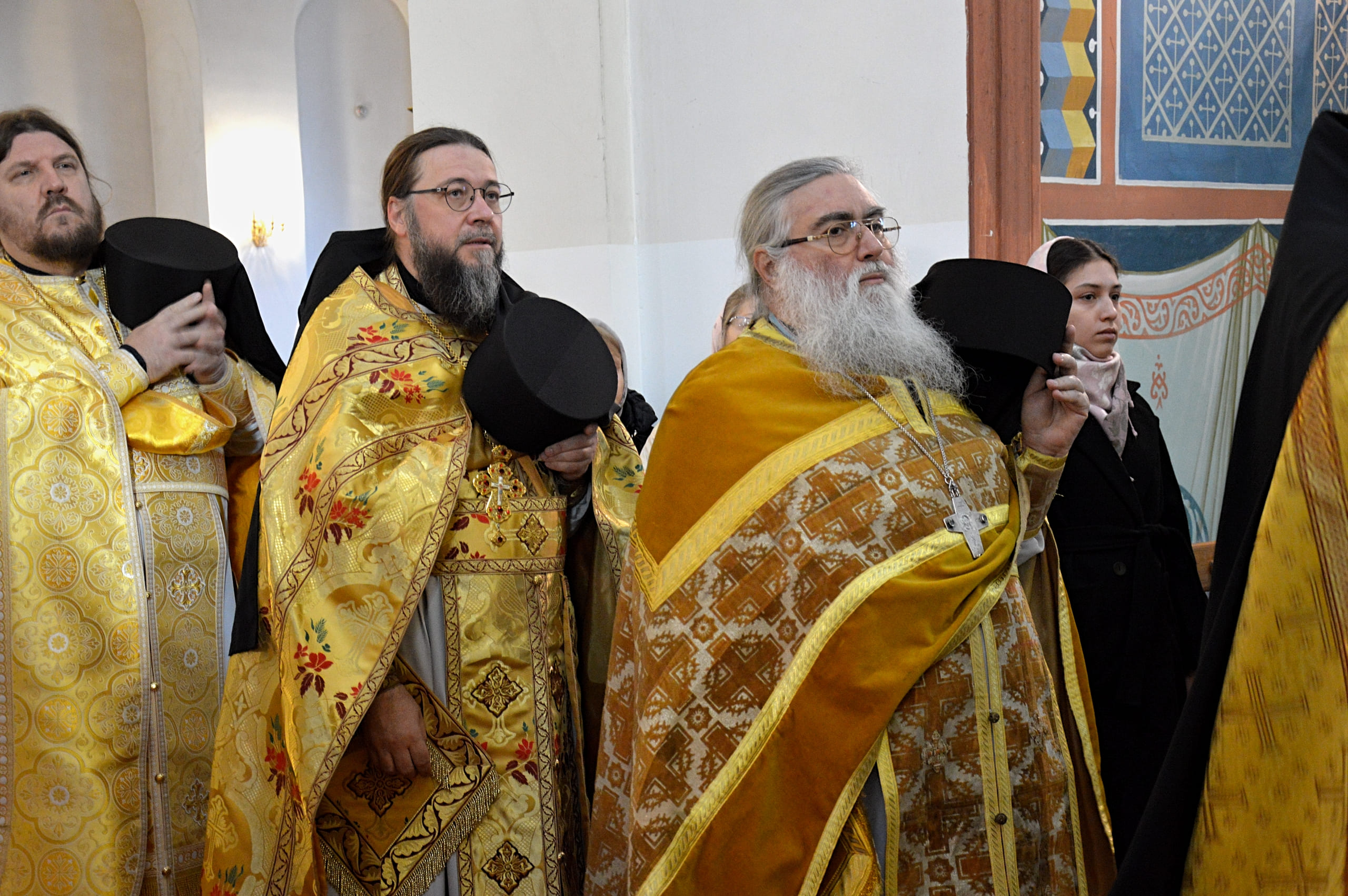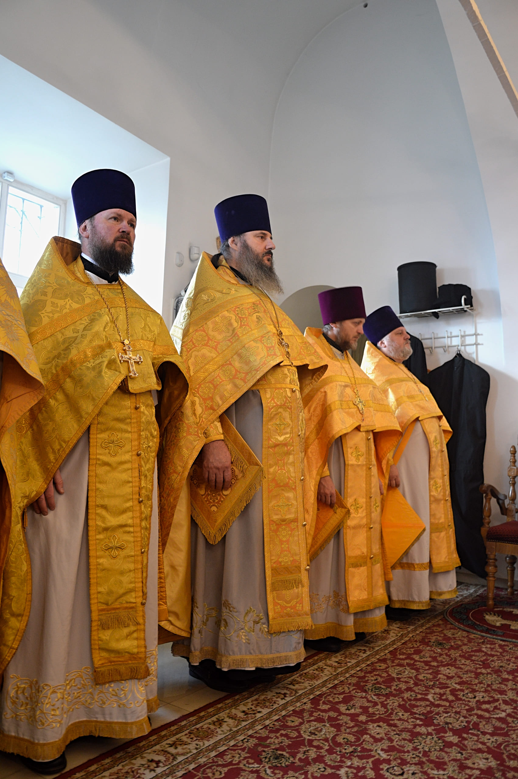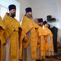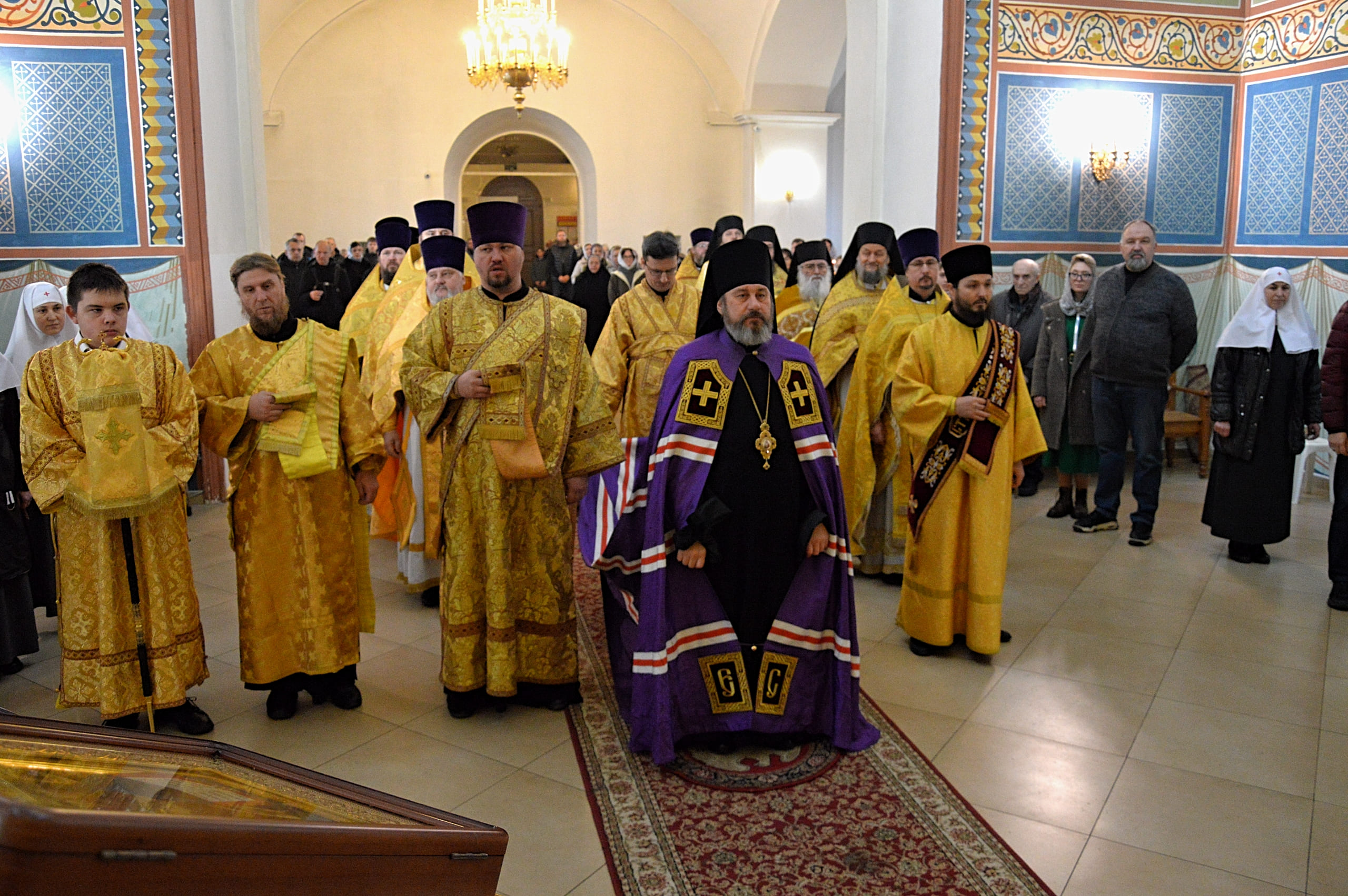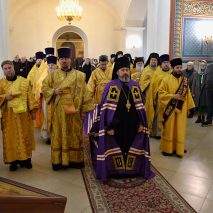 Его Преосвященству сослужили секретарь епархиального управления иерей Антоний Чуть, благочинные церковных округов, игумены, клирики собора и духовенство епархии.