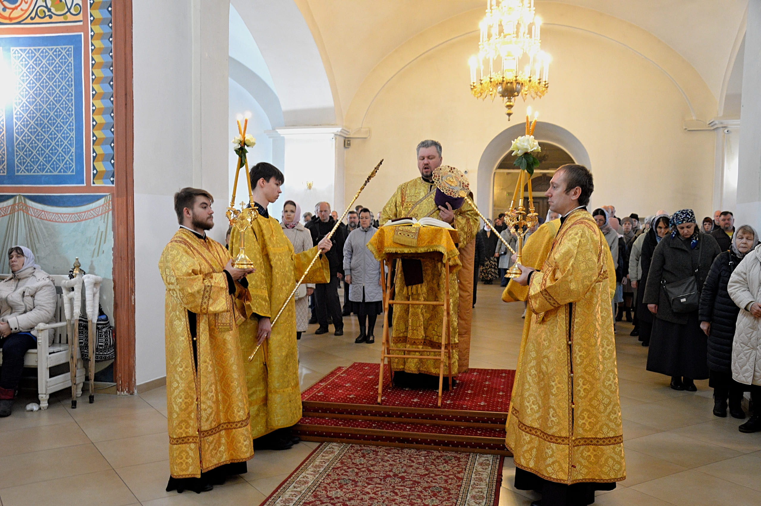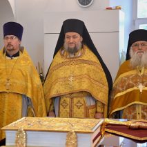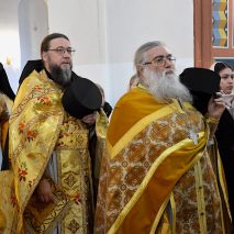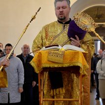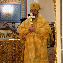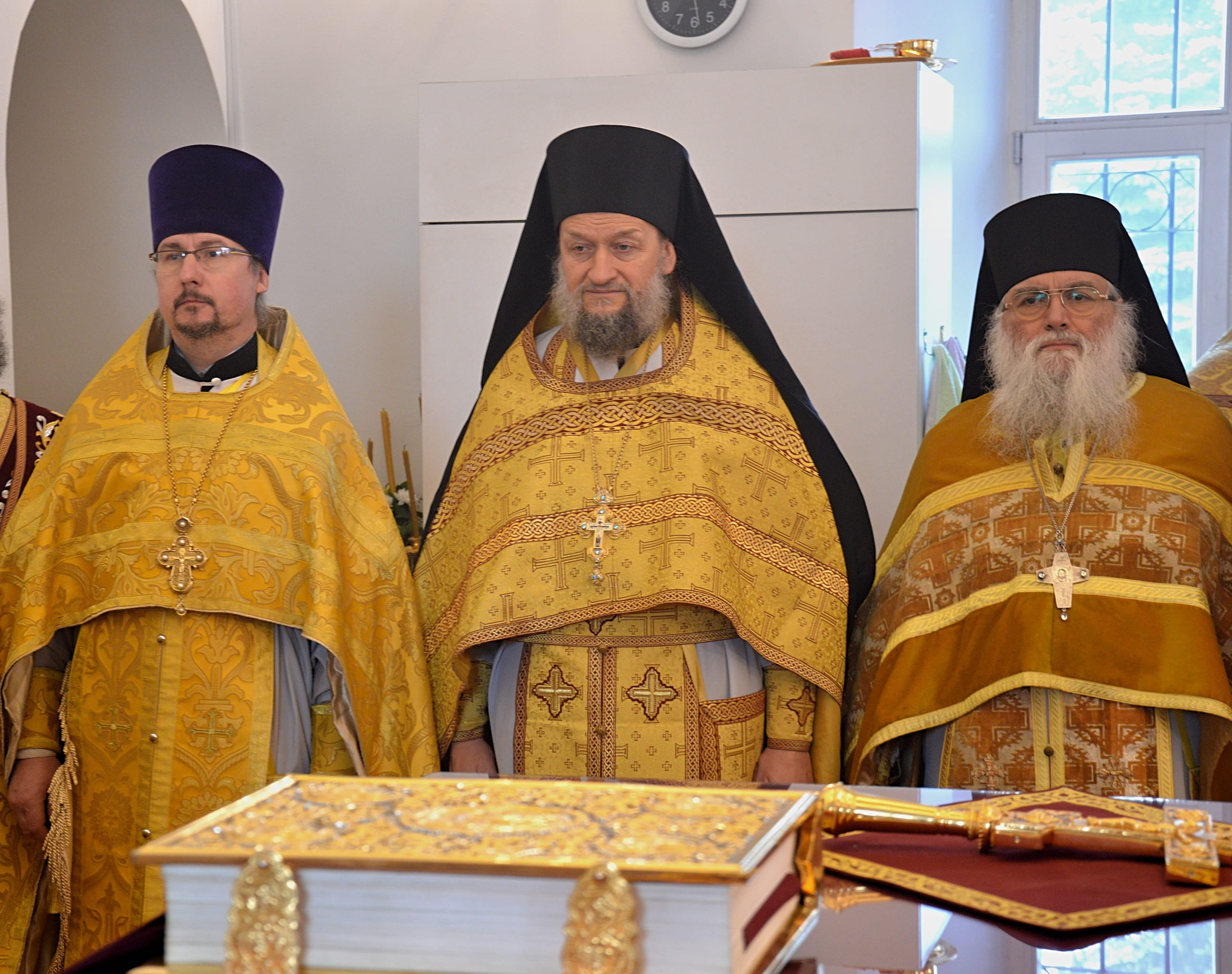 Его Преосвященству сослужили секретарь епархиального управления иерей Антоний Чуть, благочинные церковных округов, игумены, клирики собора и духовенство епархии.