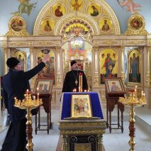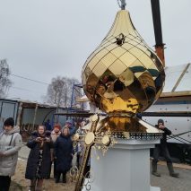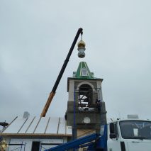 По окончании молитвы освященные купол и крест были торжественно установлены на храм.