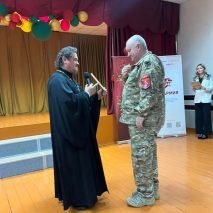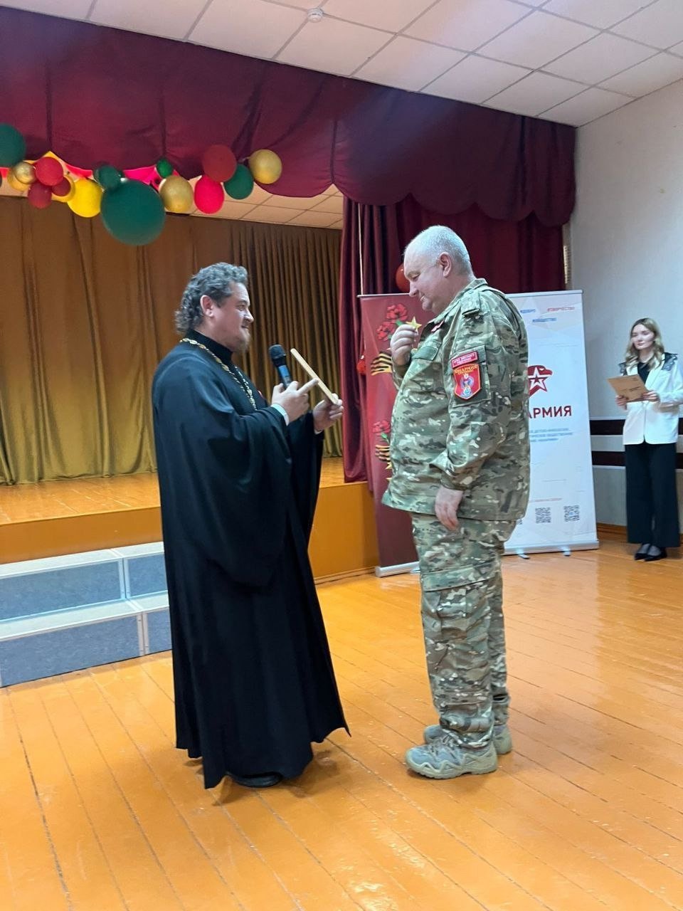 Также отец Александр передал в дар директору школы и руководителю Дома «ЮНАРМИИ» Александровского района Владимиру Юрьевичу Будникову икону Архангела Михаила.