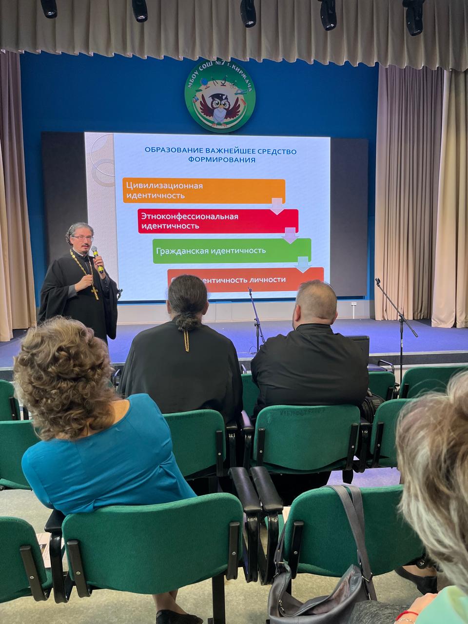 24 октября 2025 года в средней общеобразовательной школе №7 города Киржач в рамках XI Епархиальных рождественских чтений «Просвещение и нравственность: формирование личности и вызовы времени» состоялась секция на тему: Духовно-нравственная культура народов России. Перспективы и проблемы преподавания комплексного курса ОРКСЭ и предметной области ОДНКНР. ОКРСЭ и ОДНКНР в системе духовно-нравственного воспитания»