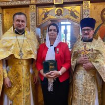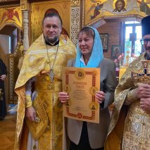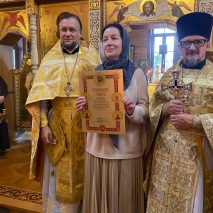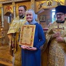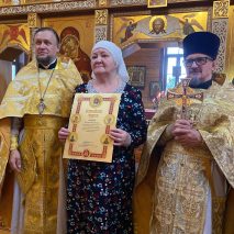 Затем протоиерей Сергий обратился к собравшимся со словом проповеди. Также по благословению Преосвященного Стефана, епископа Александровского и Юрьев-Польского, отец Сергий вручил ряду прихожан храма епархиальные награды: медали прп. Алексия Зосимовского III степени и Архиерейские грамоты.