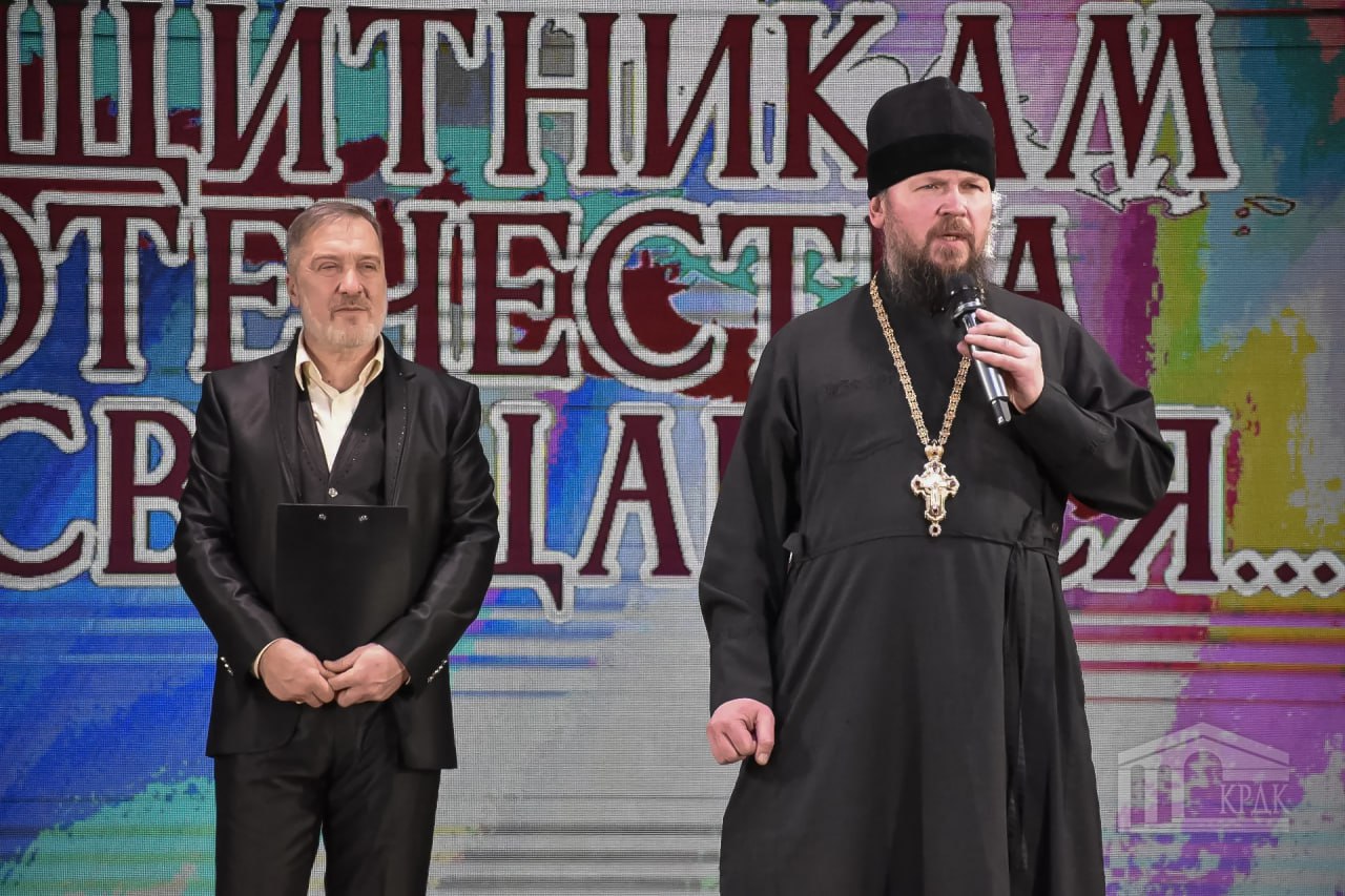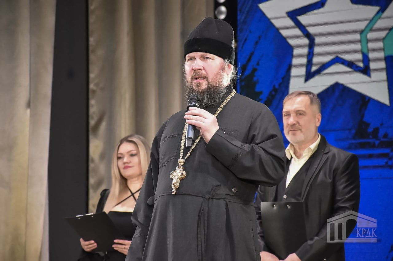 Среди почётных гостей, поздравивших защитников Отечества, был благочинный Киржачского церковного округа протоиерей Дмитрий Ершов.