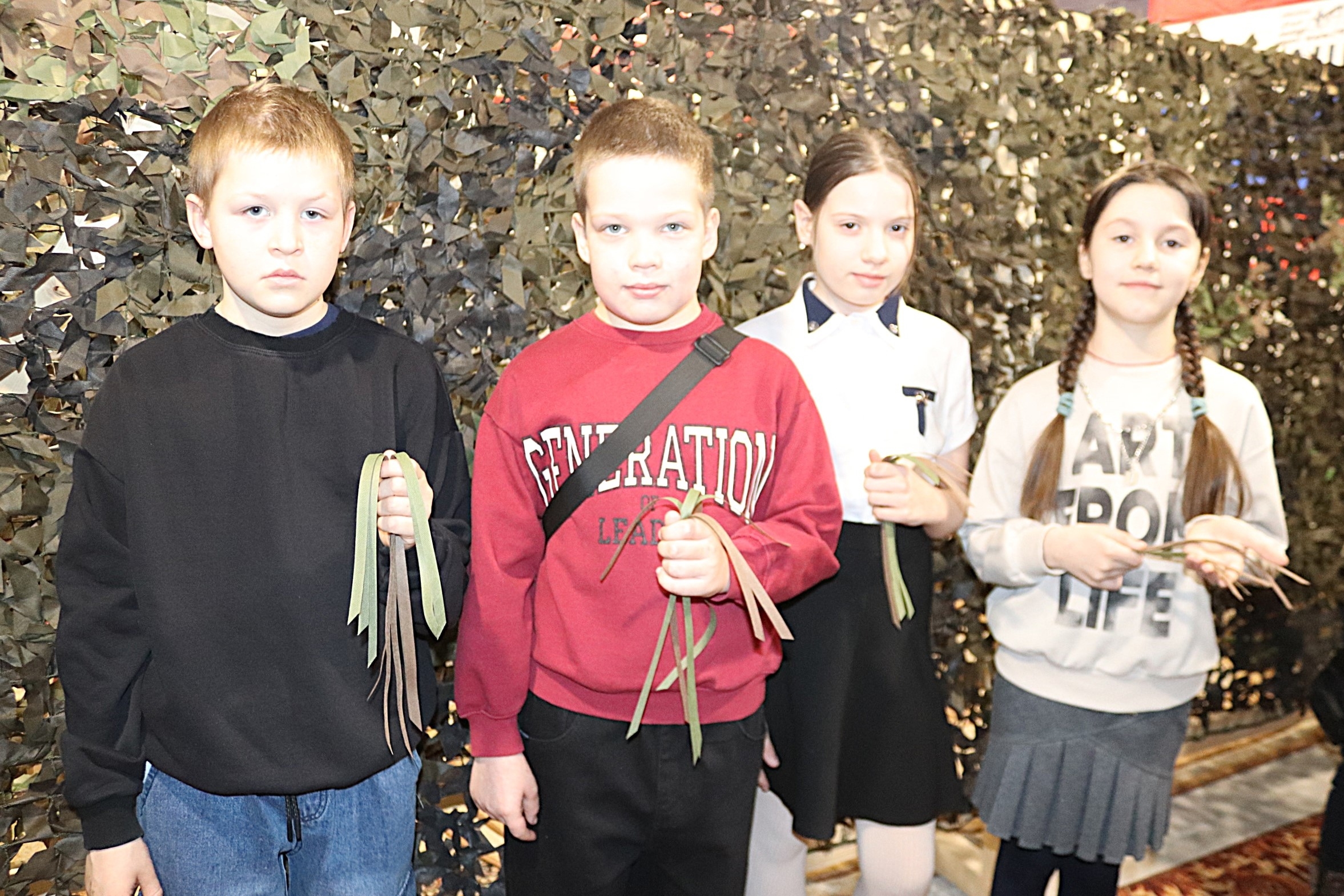 Ребята узнали о деятельности добровольцев и помощи фронту, после чего приступили к практике: нарезали ленты на станке, под руководством наставницы вплетали их в основу, а затем сняли и сложили готовое изделие по правилам быстрой распаковки. При участии добровольца Марины Викторовны Княжевой воспитанники упаковали сеть и вложили в неё письма для бойцов. Сладкие угощения, переданные детьми, будут направлены в зону СВО отдельным грузом.
