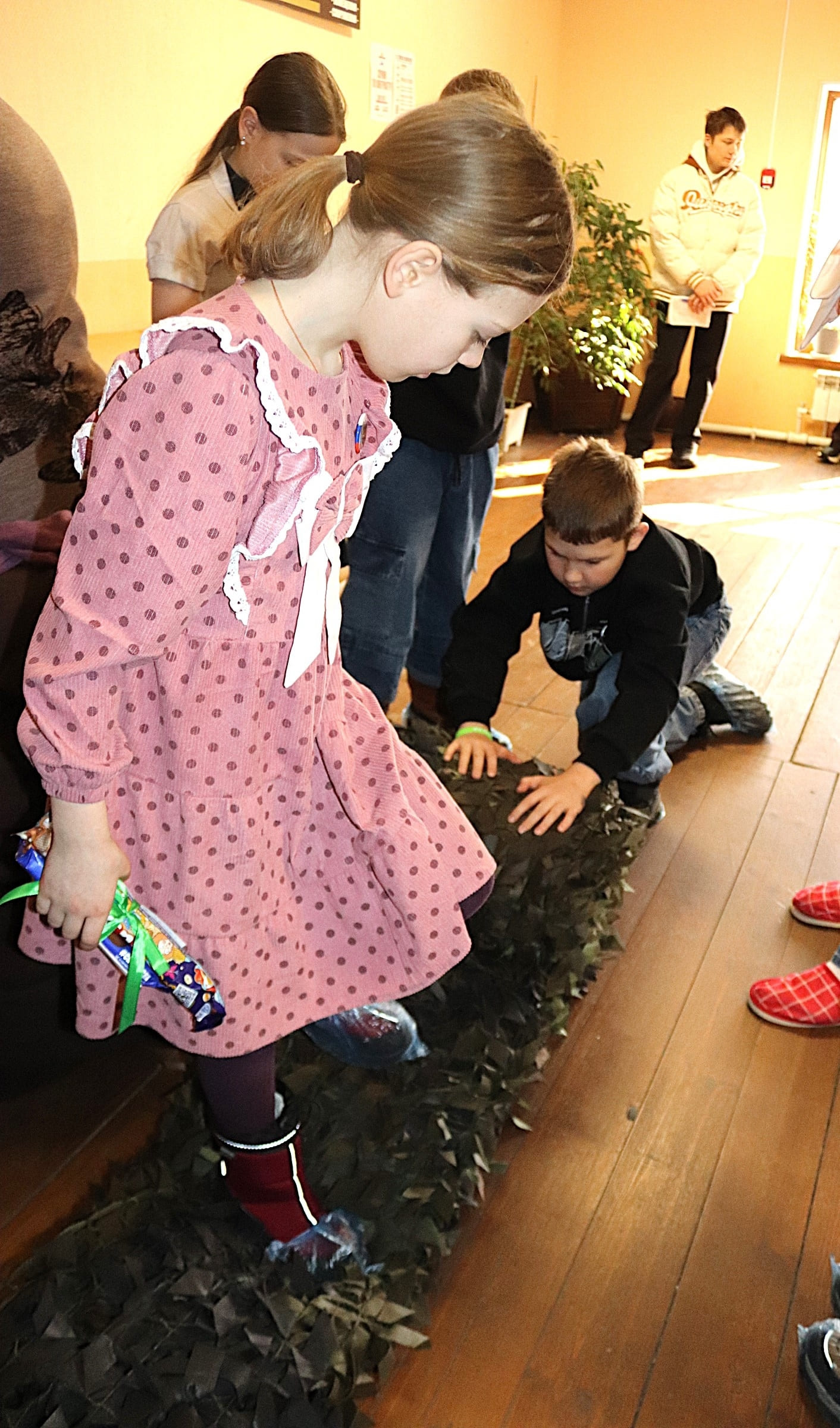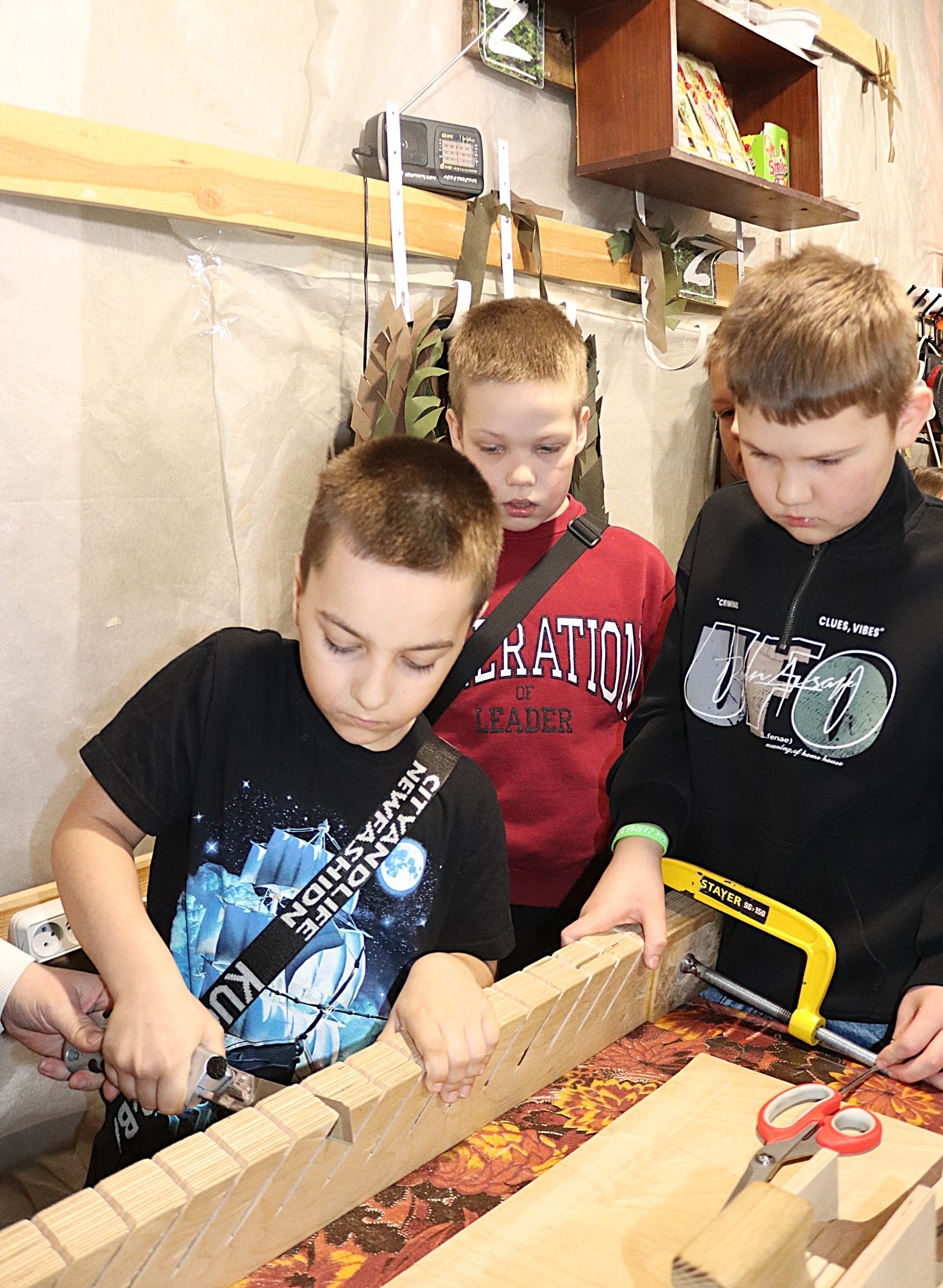 Завершилось занятие обучением натягиванию сети-основы на станину — задачей, с которой юные помощники справились слаженно. Урок вызвал у детей желание продолжать участвовать в добровольческой помощи.