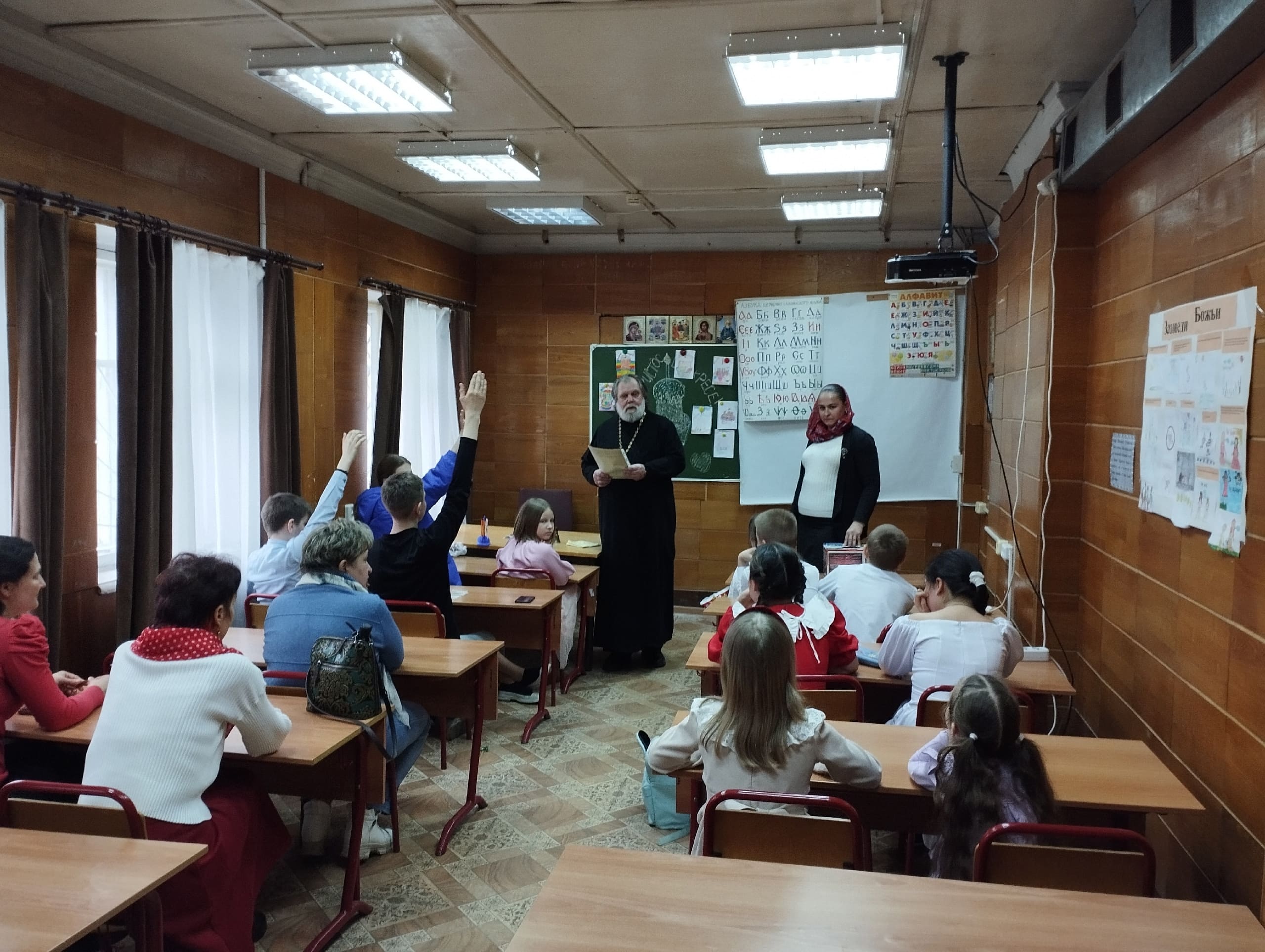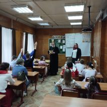 Директор Воскресной школы иерей Николай Корнеев провёл для детей познавательную викторину, посвящённую истории и традициям Пасхи. Юные прихожане показали свои знания, отвечая на вопросы. Каждый правильный ответ был отмечен сладким призом.