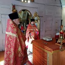 За богослужением были вознесены особые молитвенные прошения о нашем Отечестве, о благочестивых создателях храма, который в этом году отмечает 200-летний юбилей и о всех, кто в разные годы служил и трудился на приходе.