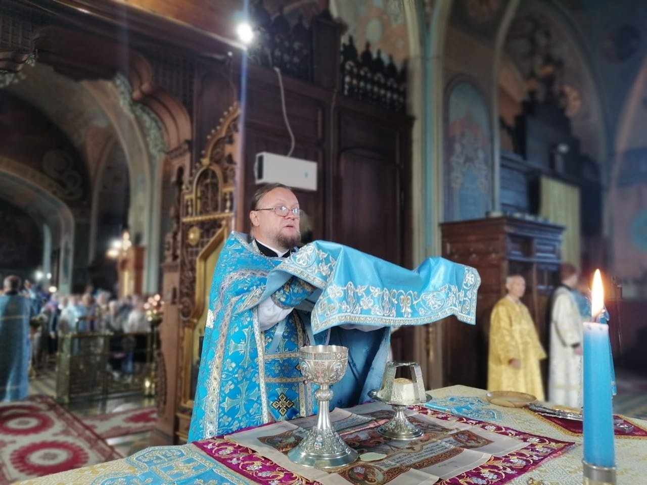 После крестного хода верующие поклонились плащанице Пресвятой Богородицы.
