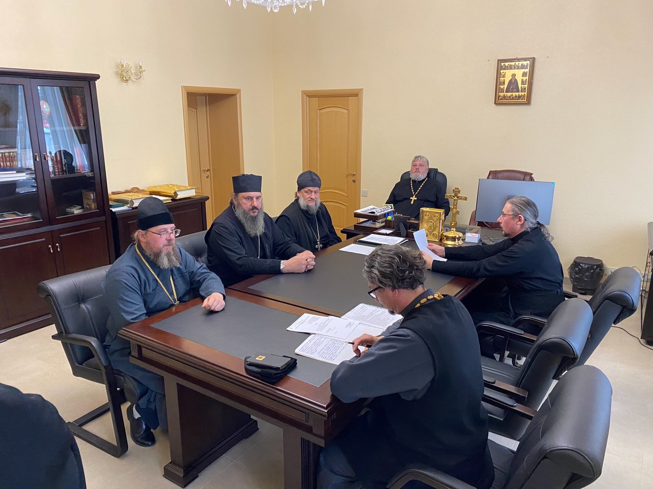 В заседании приняли участие: секретарь епархиального управления иерей Антоний Чуть, игумен Серафим (Котенев), протоиерей Олег Михайлов, протоиерей Анатолий Балыкин, протоиерей Николай Романович и протоиерей Дионисий Комчихин.