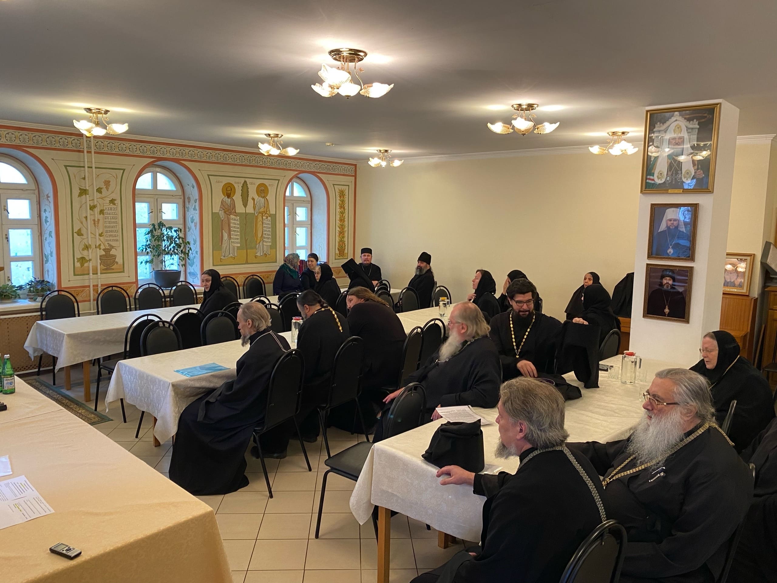 Заседанию предшествовало служение Божественной литургии в Благовещенском соборе обители. Богослужение совершил Преосвященный Стефан, епископ Александровский и Юрьев-Польский.