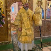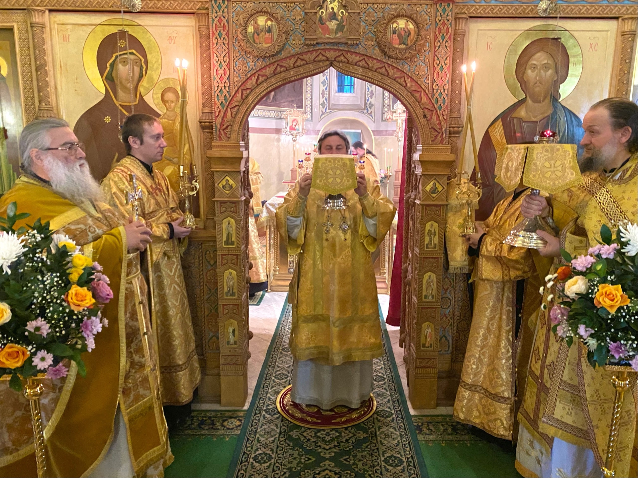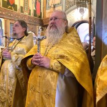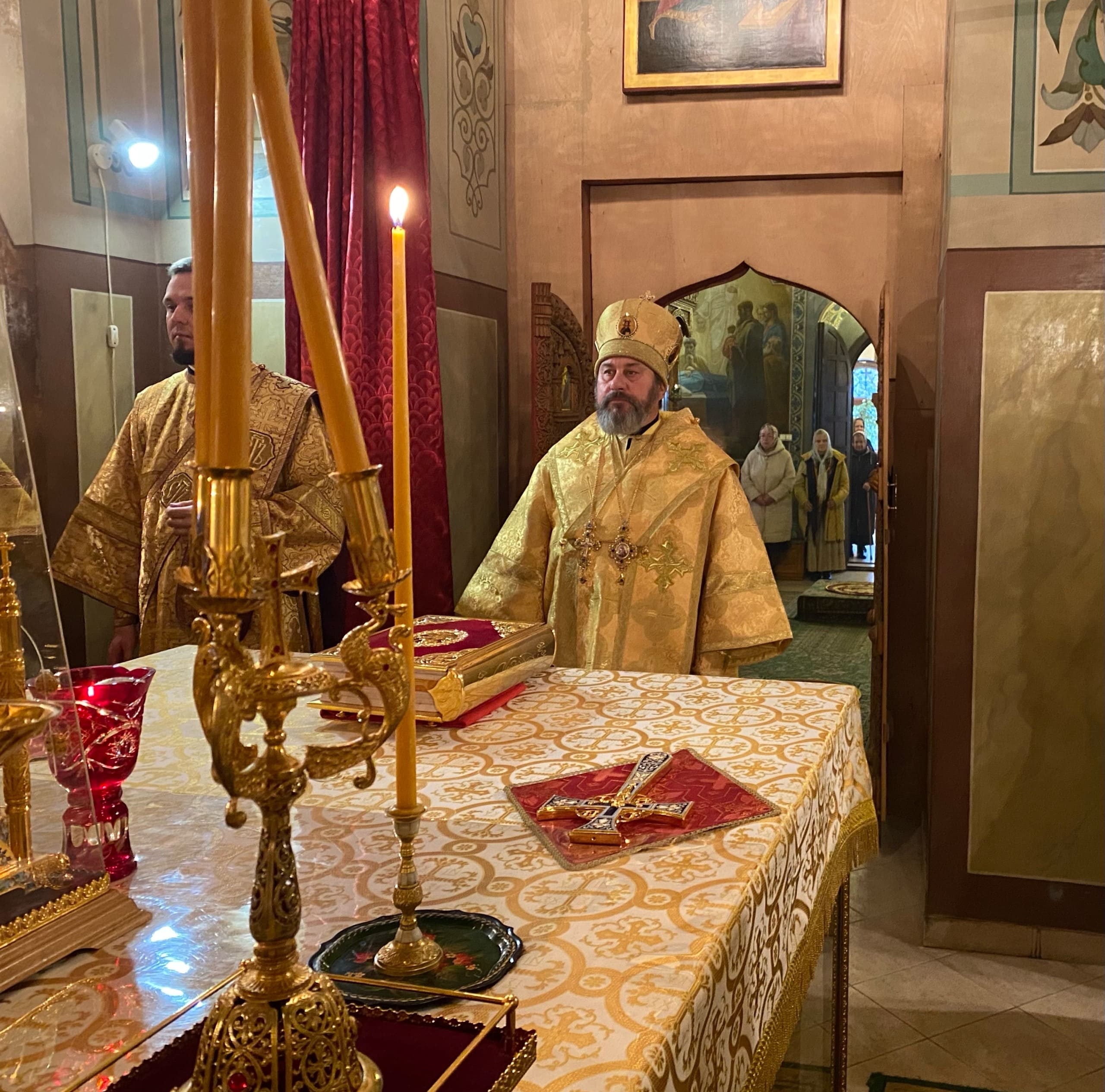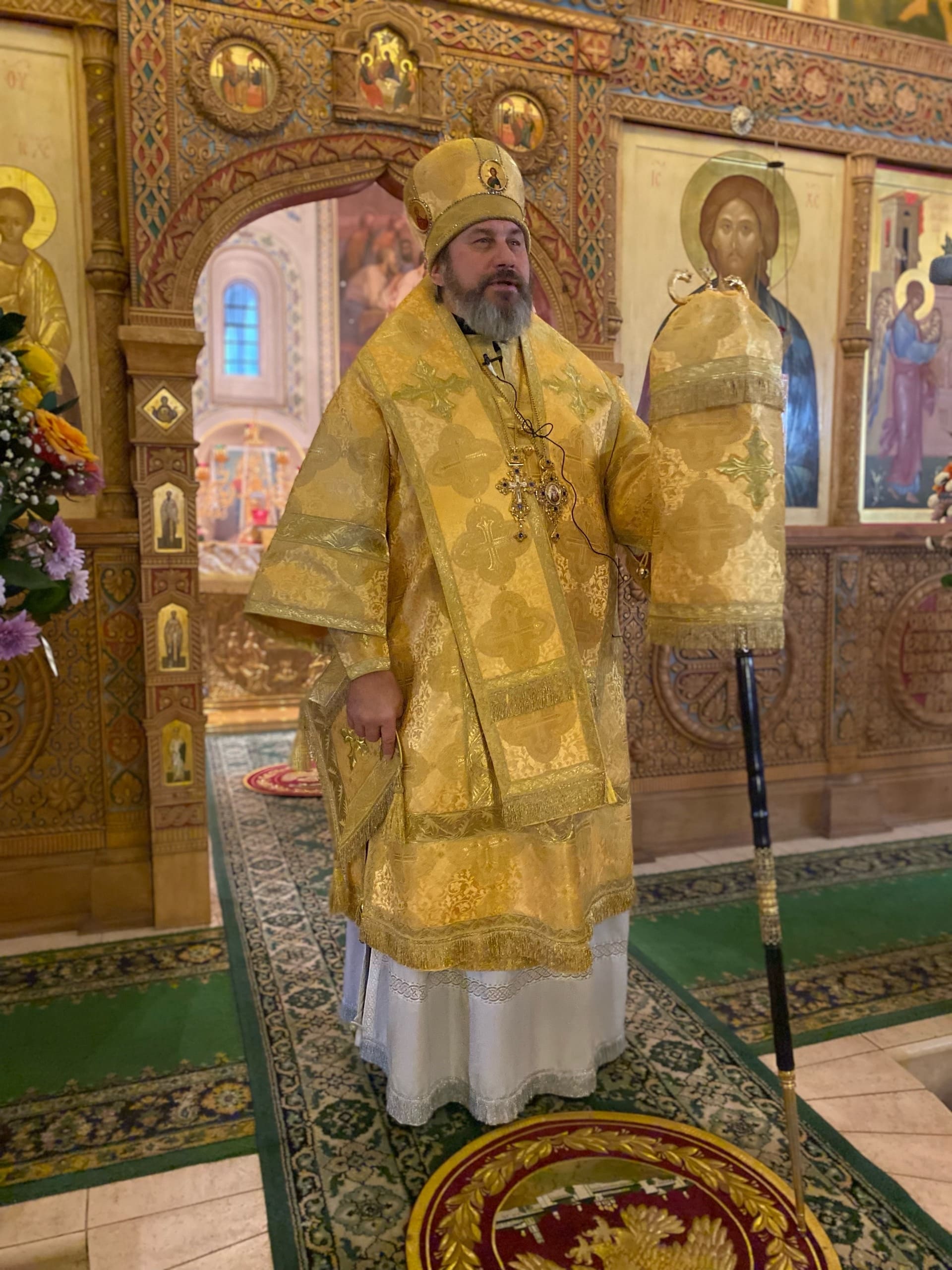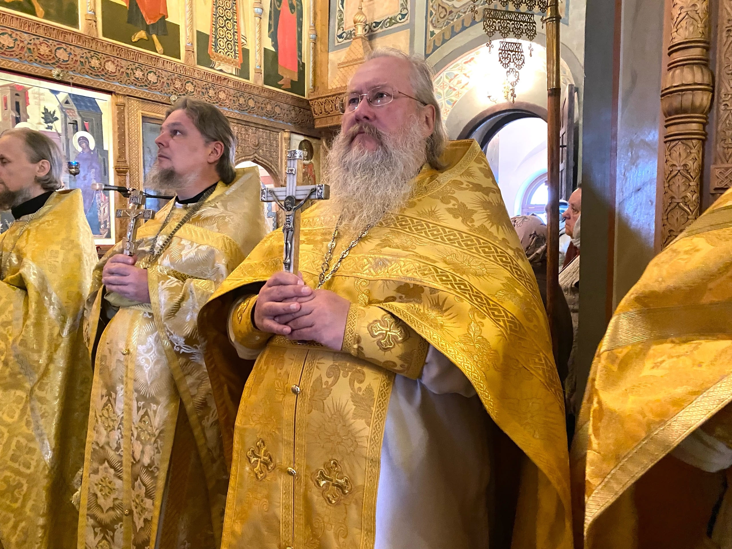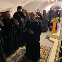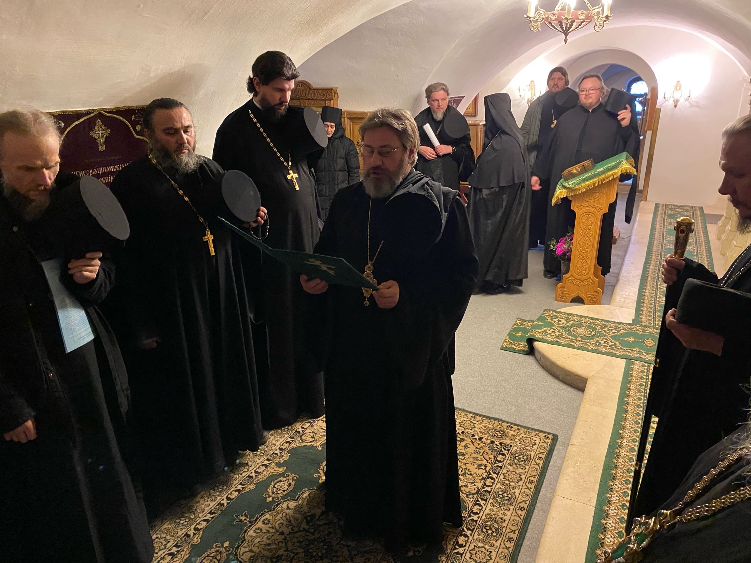Его Преосвященству сослужили: секретарь епархии по монастырям игумен Серафим (Котенев), а также игумены и монашествующие епархии.