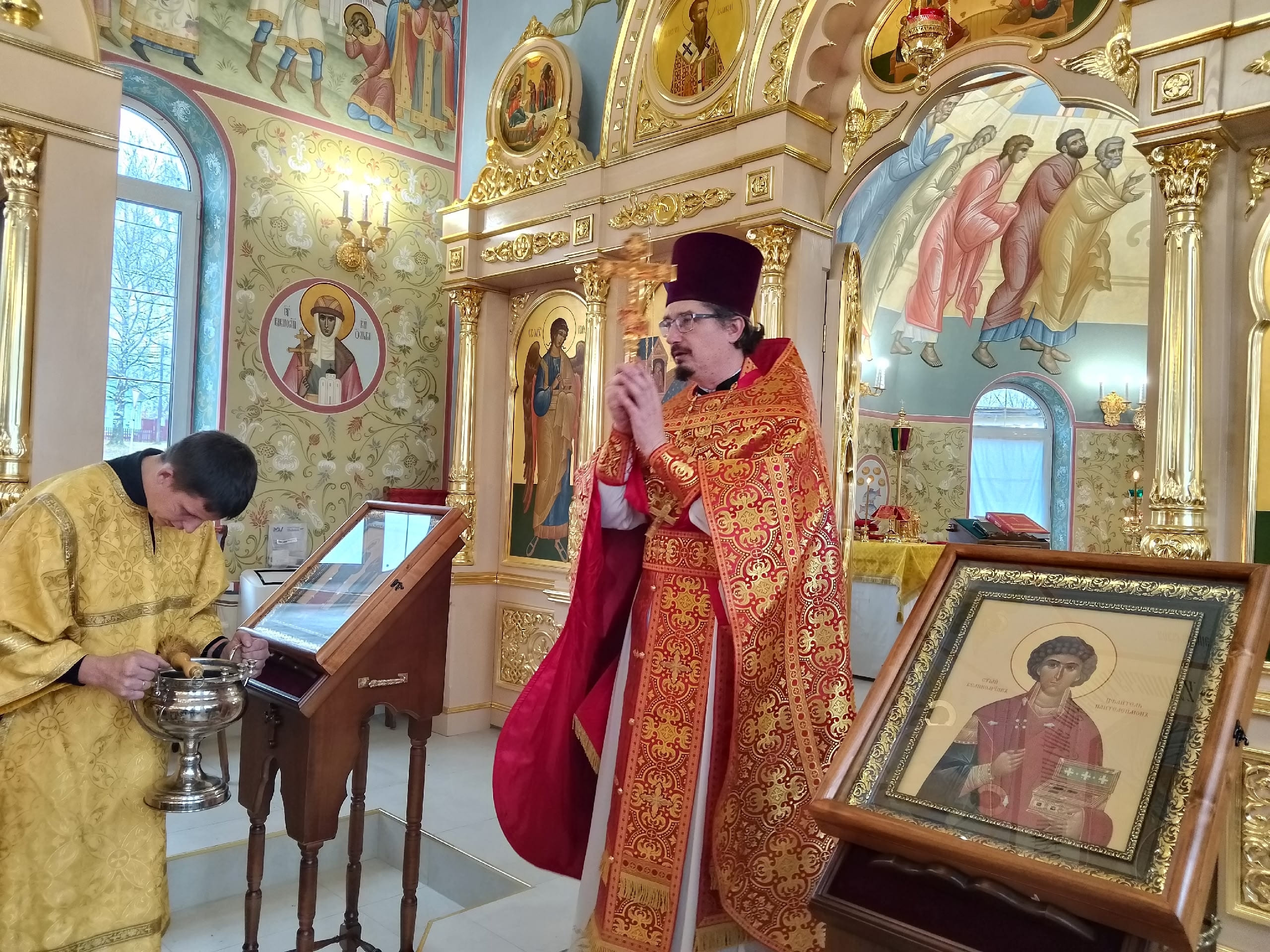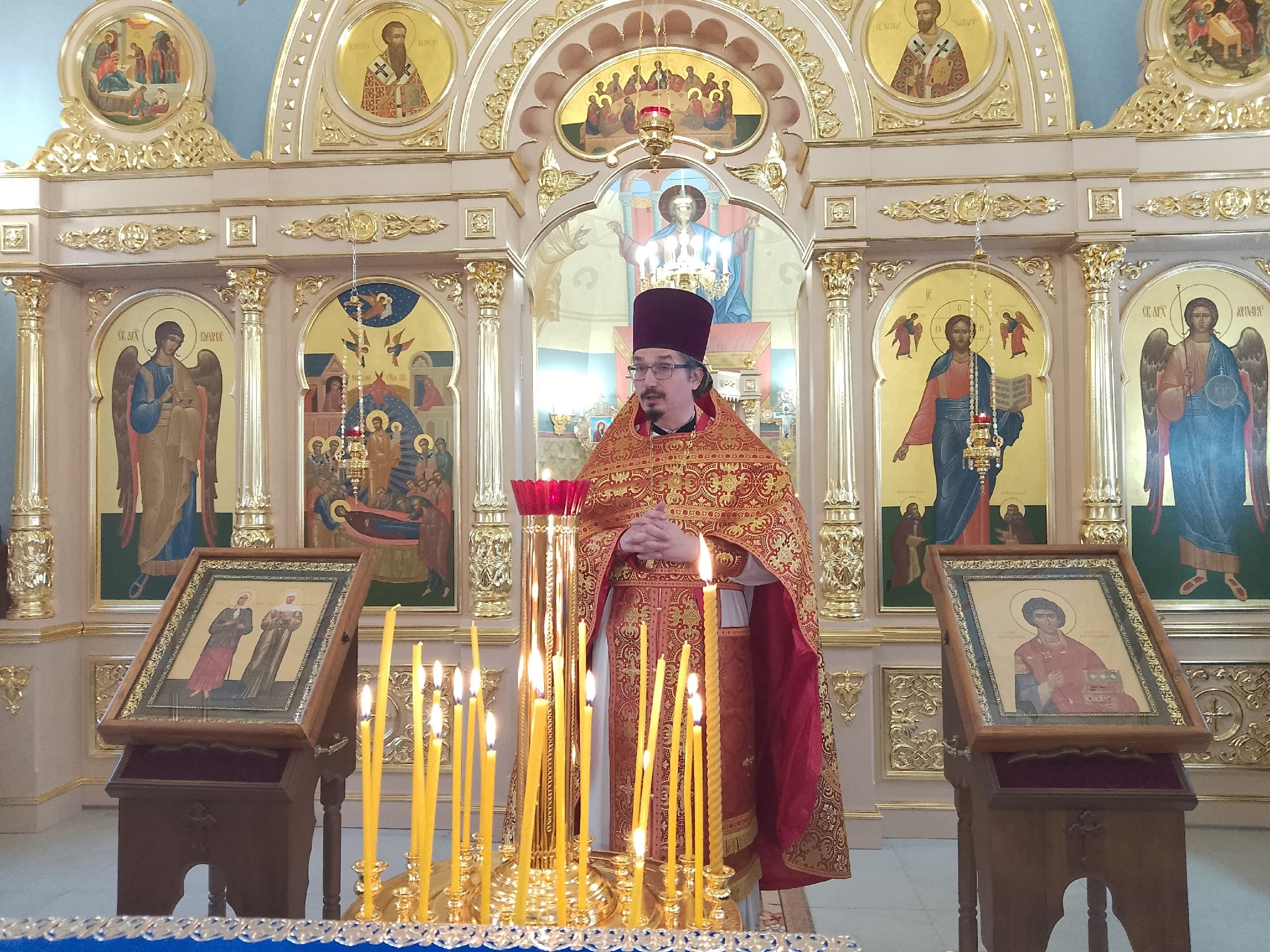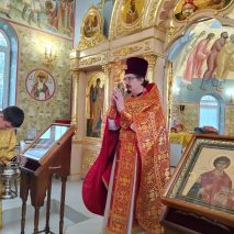 По окончании Литургии настоятель храма протоиерей Дионисий Комчихин совершил славление великомученику Димитрию. Обратившись к пастве, отец Дионисий поздравил всех с началом богослужебной жизни в новом храме.