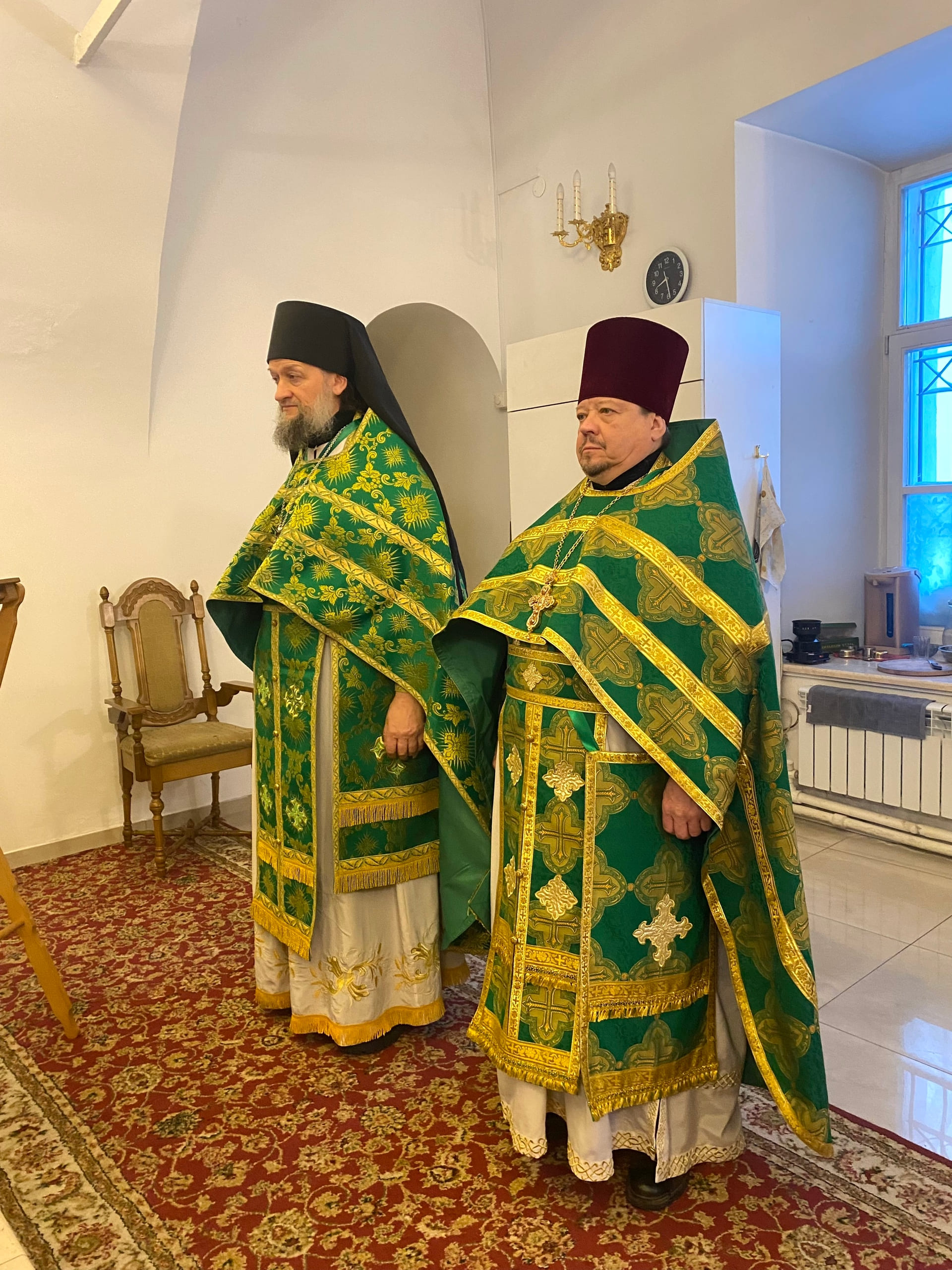 Божественную литургию в этот день возглавил секретарь епархиального управления иерей Антоний Чуть. Ему сослужили: благочинный Александровского церковного округа протоиерей Олег Михайлов, секретарь епархии по монастырям игумен Серафим (Котенев), протоиерей Иоанн Девликамов, протоиерей Георгий Шинкаренко, иерей Алексий Беляков и диакон Илья Орешников.