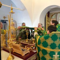 Во время литургии мощи находились на престоле, а после отпуста были вынесены для поклонения верующим. Иерей Антоний прочитал молитву собору Дивеевских святых, а иерей Алексий Ануфриев, молитву блаженной Ксении Петербургской.