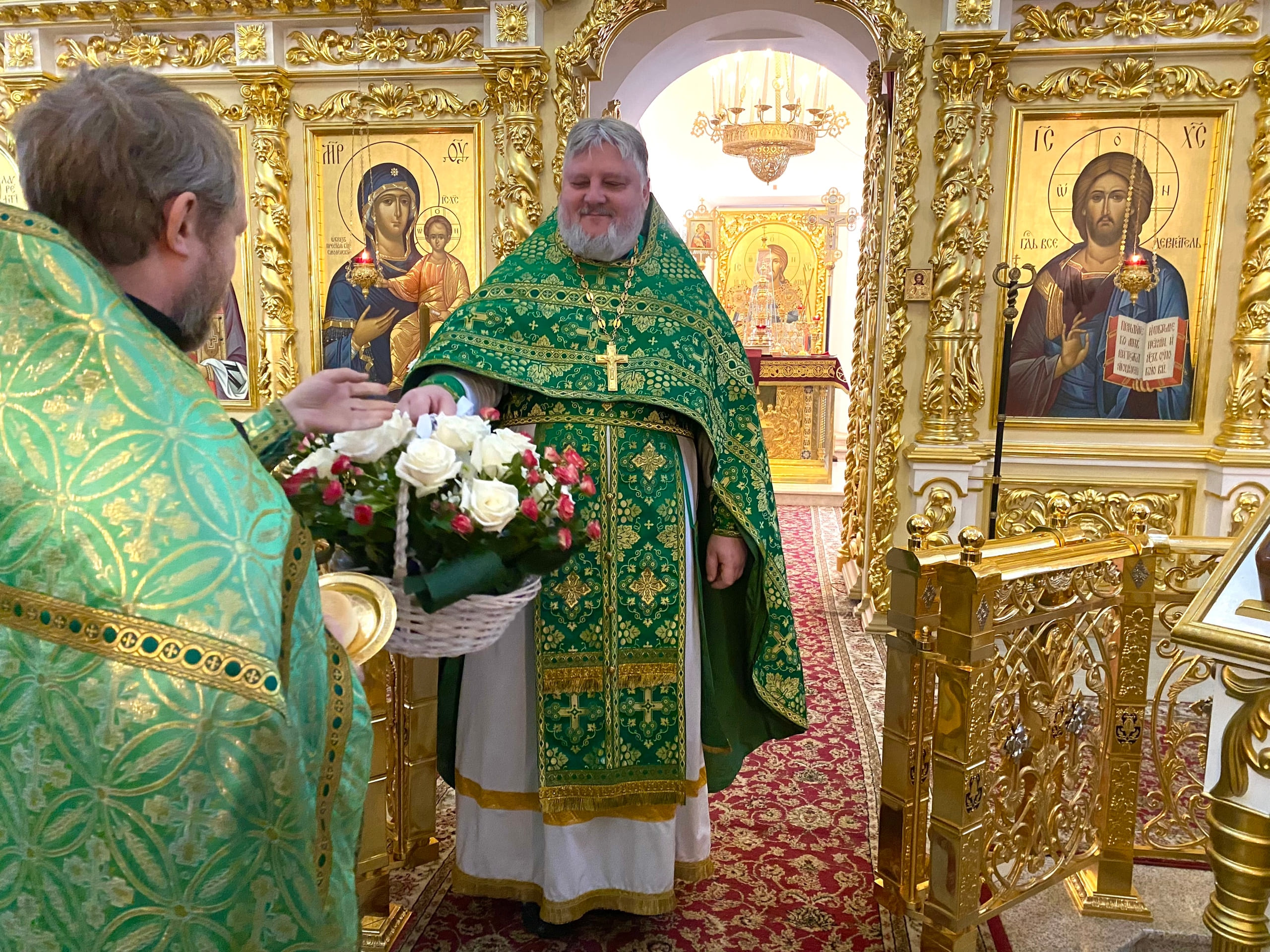 Затем от лица собравшихся протоиерей Олег Михайлов поздравил иерея Антония Чуть с днем рождения. После поздравительного слова было возглашено многолетие.