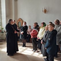 Отец Николай подробно рассказал об архитектурных особенностях собора, истории его строительства, а также о внутреннем убранстве.
