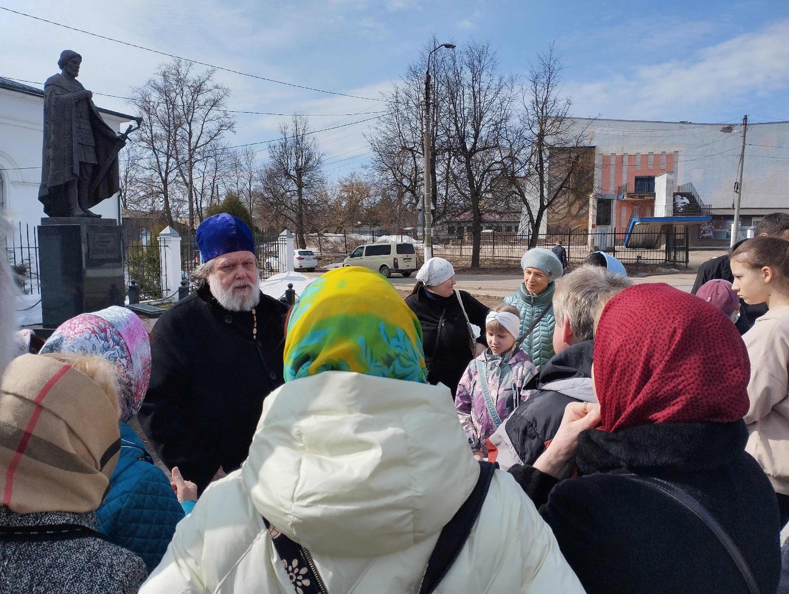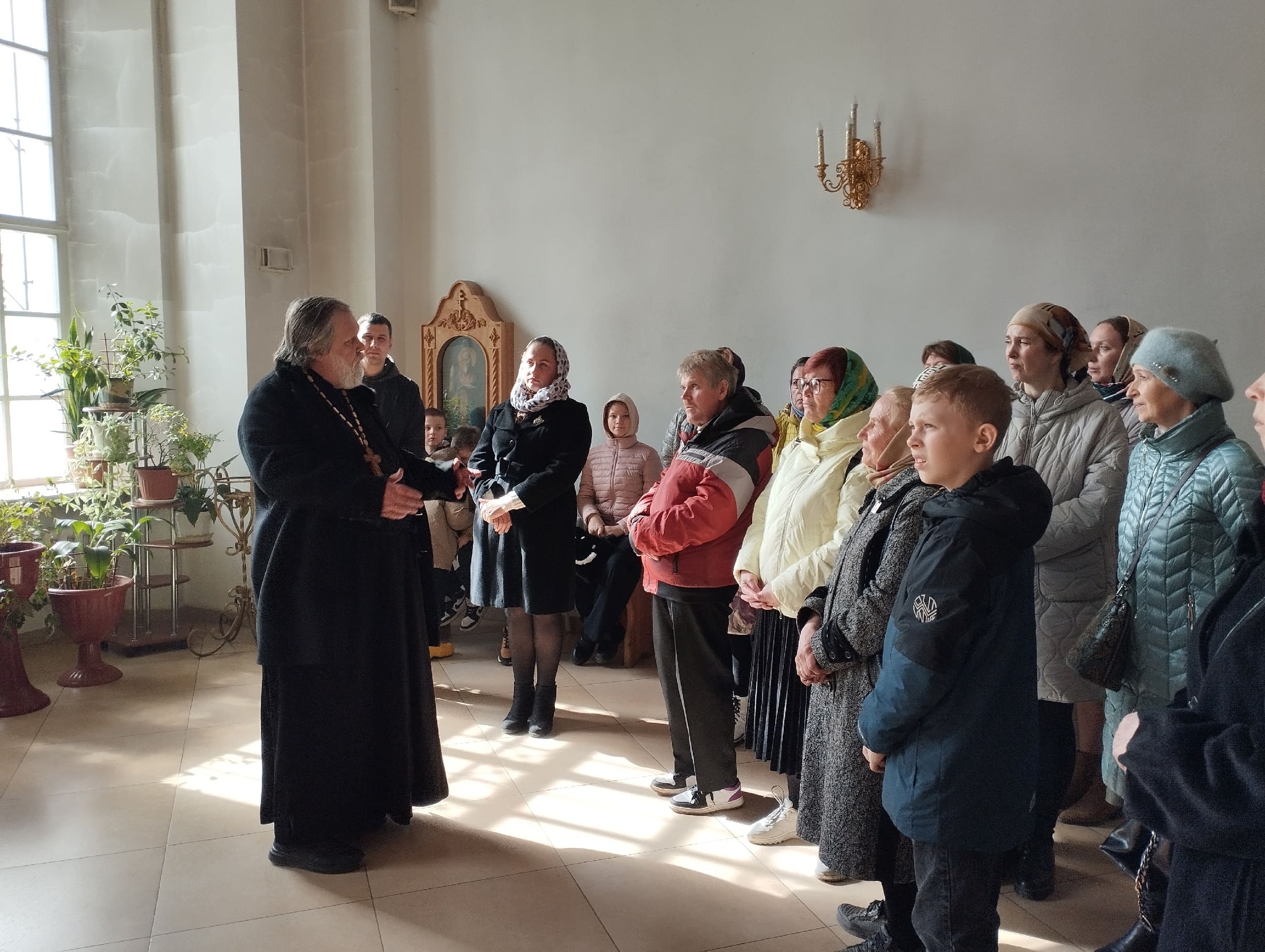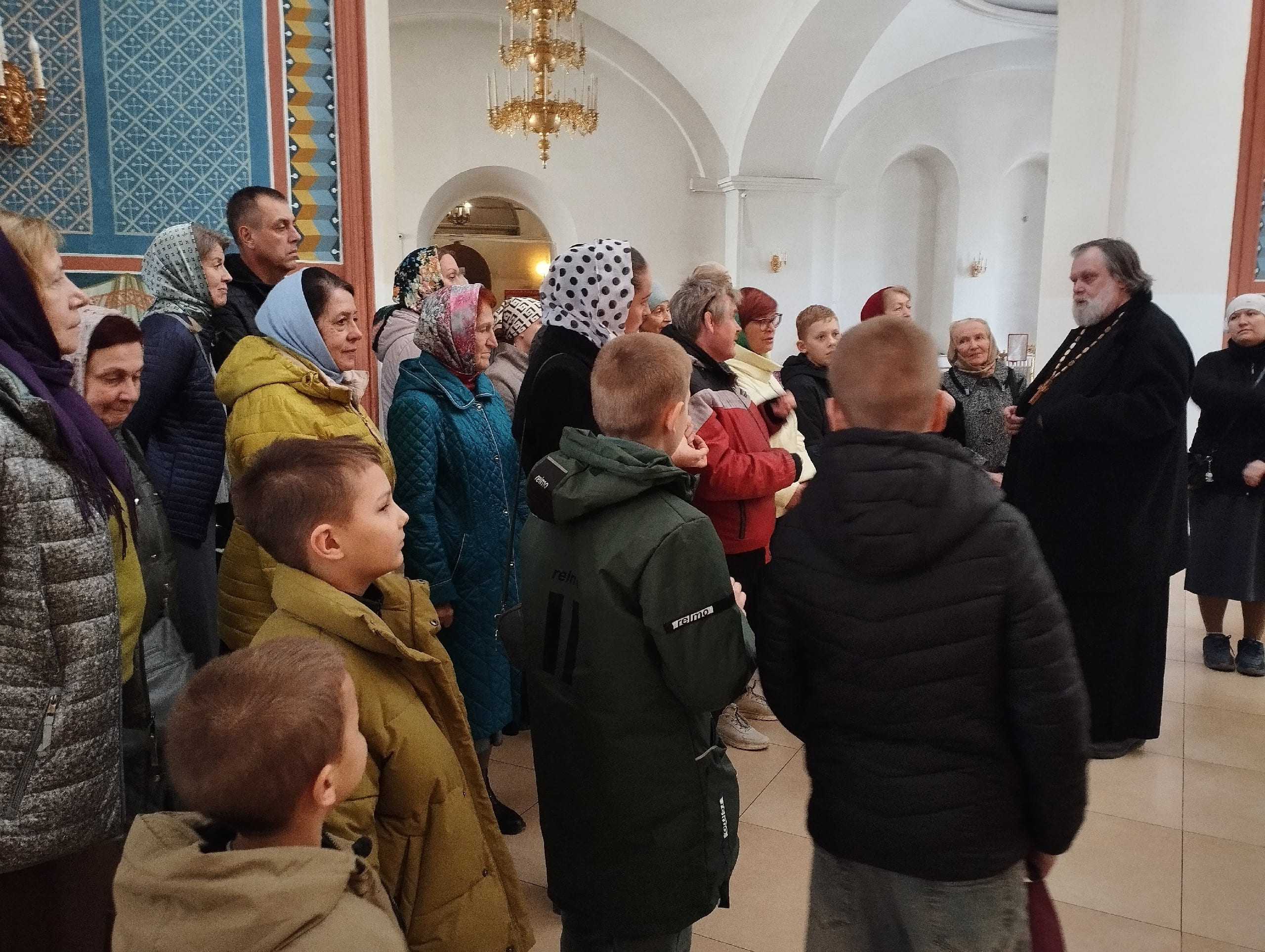 Отец Николай подробно рассказал об архитектурных особенностях собора, истории его строительства, а также о внутреннем убранстве.