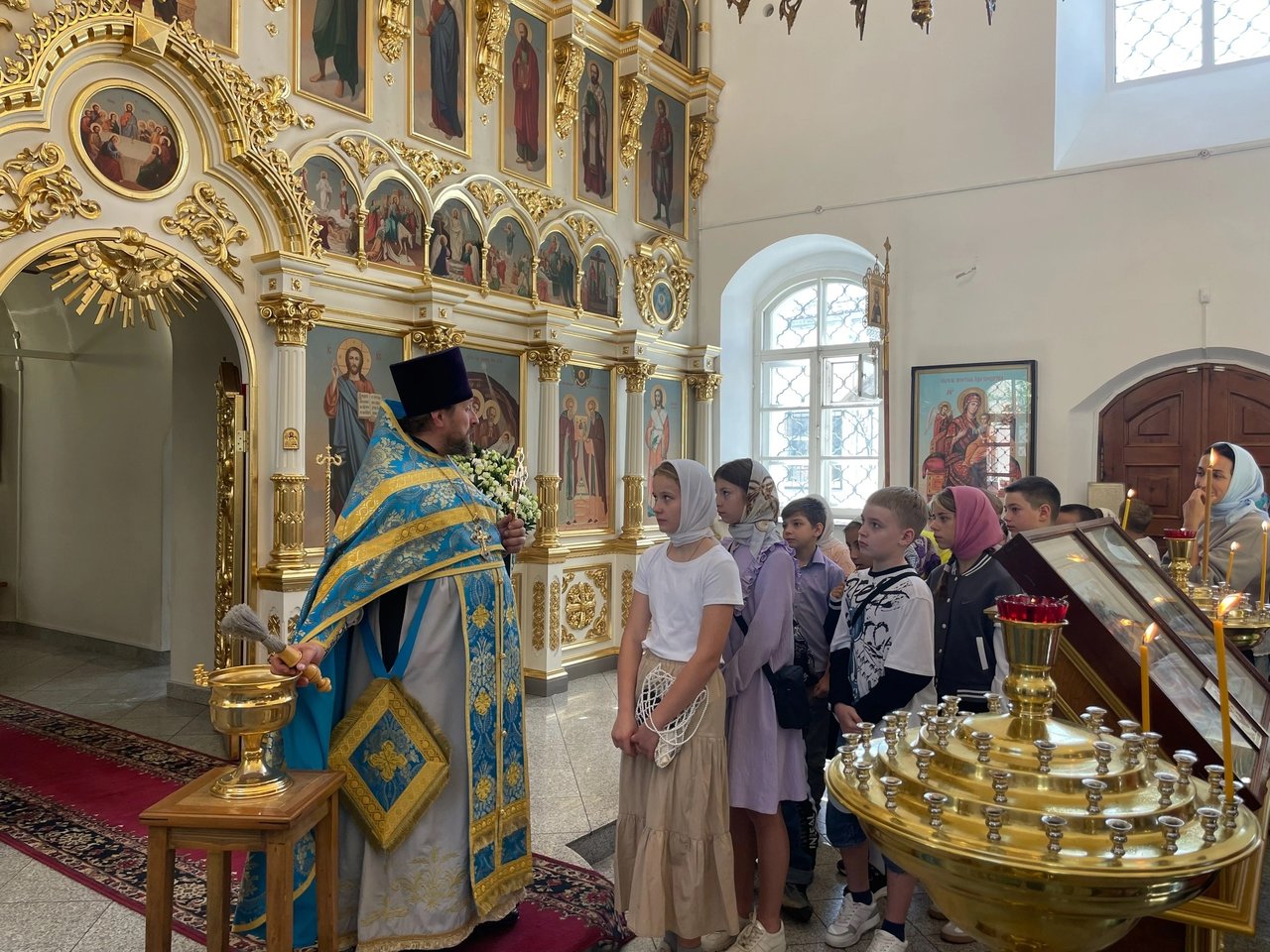 Отец Максим поздравил всех с началом нового учебного года, пожелав ребятам успехов в учебе, ярких открытий и глубоких знаний. Он подчеркнул важность не только интеллектуального, но и духовного развития, призвав школьников стремиться к нравственному росту, быть добрыми, отзывчивыми и уважительными друг к другу.