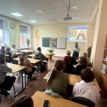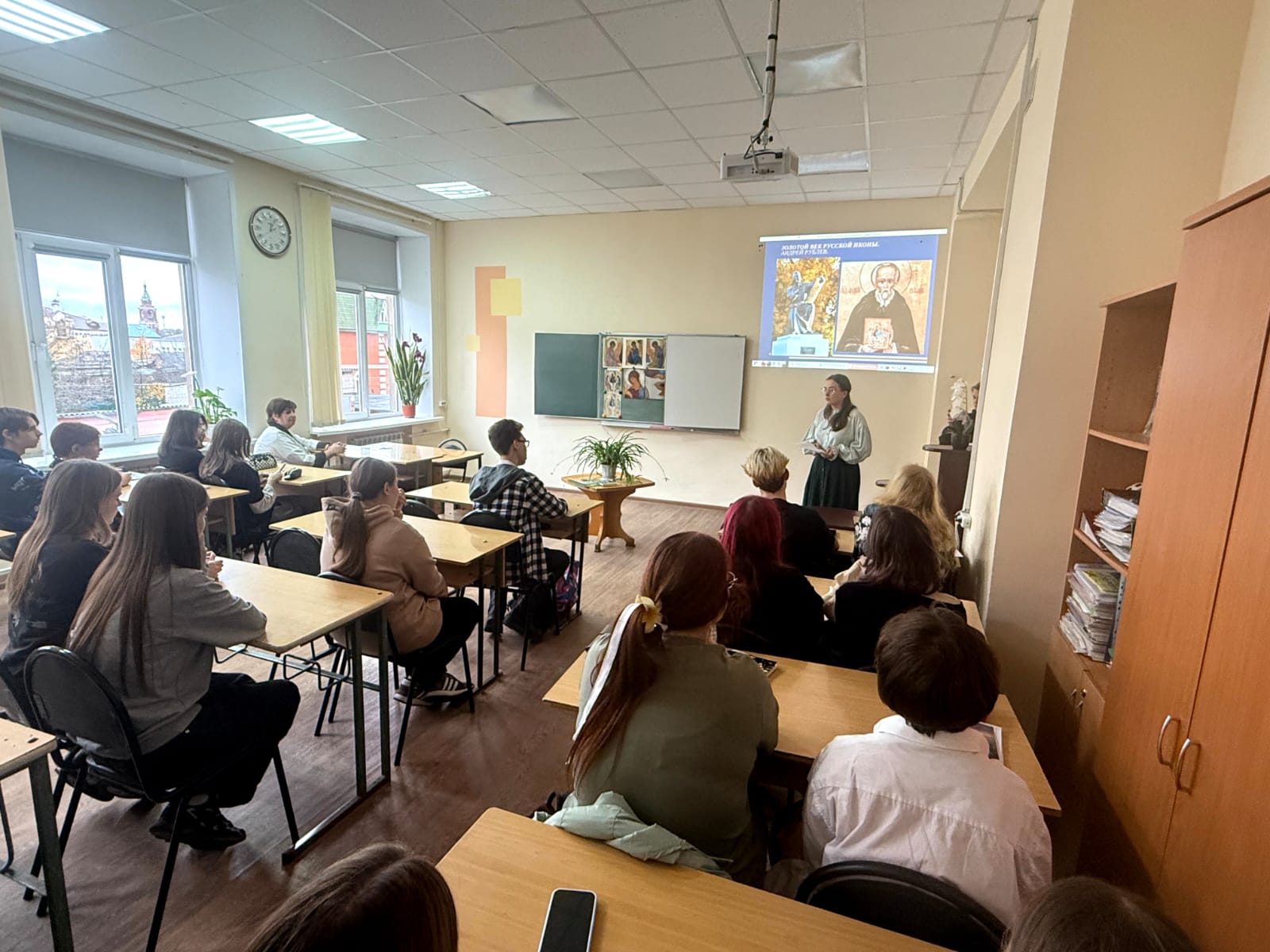 На уроке истории искусств Елена Владимировна Линева, преподаватель дисциплин художественно- эстетического цикла, представила студентам тему «Золотой век русской иконы. Андрей Рублёв».