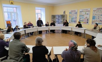 Его Преосвященству сослужили благочинный Петушинского церковного округа протоиерей Сергий Березкин, настоятель храма святых Жен-Мироносиц протоиерей Владимир Кузин и настоятель Михайло — Архангельского монастыря г. Юрьев — Польский игумен Афанасий (Селичев).