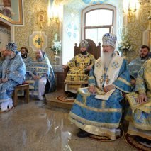 Его Высокопреосвященству сослужили: митрополит Вятский и Слободской Марк, митрополит Кемеровский и Прокопьевский Аристарх, епископ Александровский и Юрьев-Польский Стефан, епископ Иннокентий (Яковлев), секретарь Владимирского епархиального управления иеромонах Арсений (Смирнов) и духовенство Владимирской епархии.