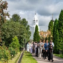 По заамвонной молитве духовенством и верующими был совершен традиционный крестный ход в честь престольного Праздника обители.