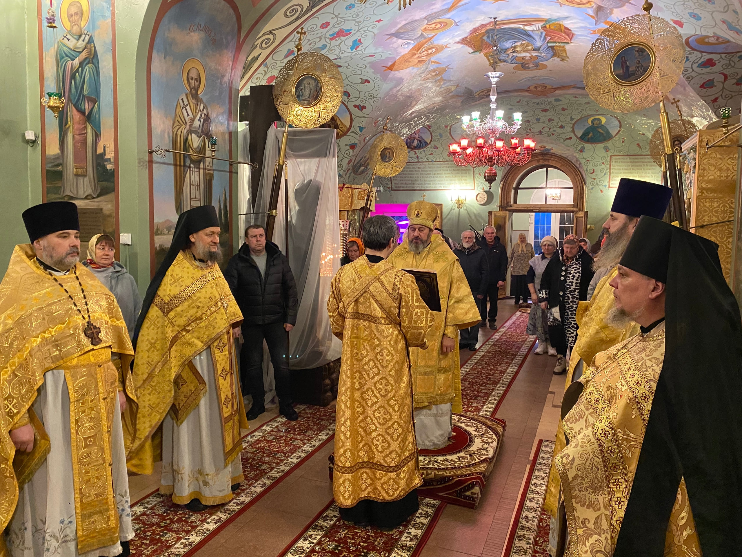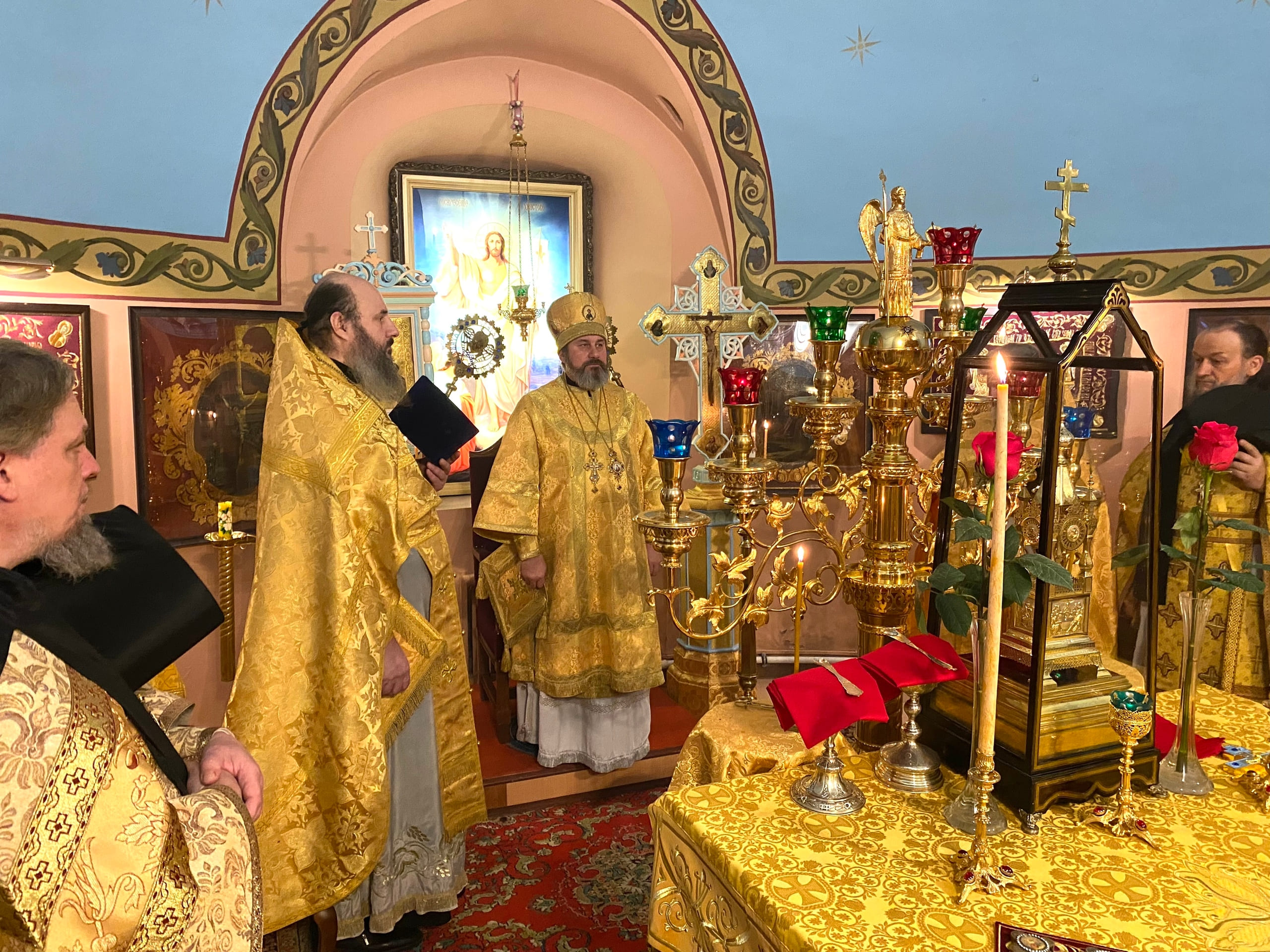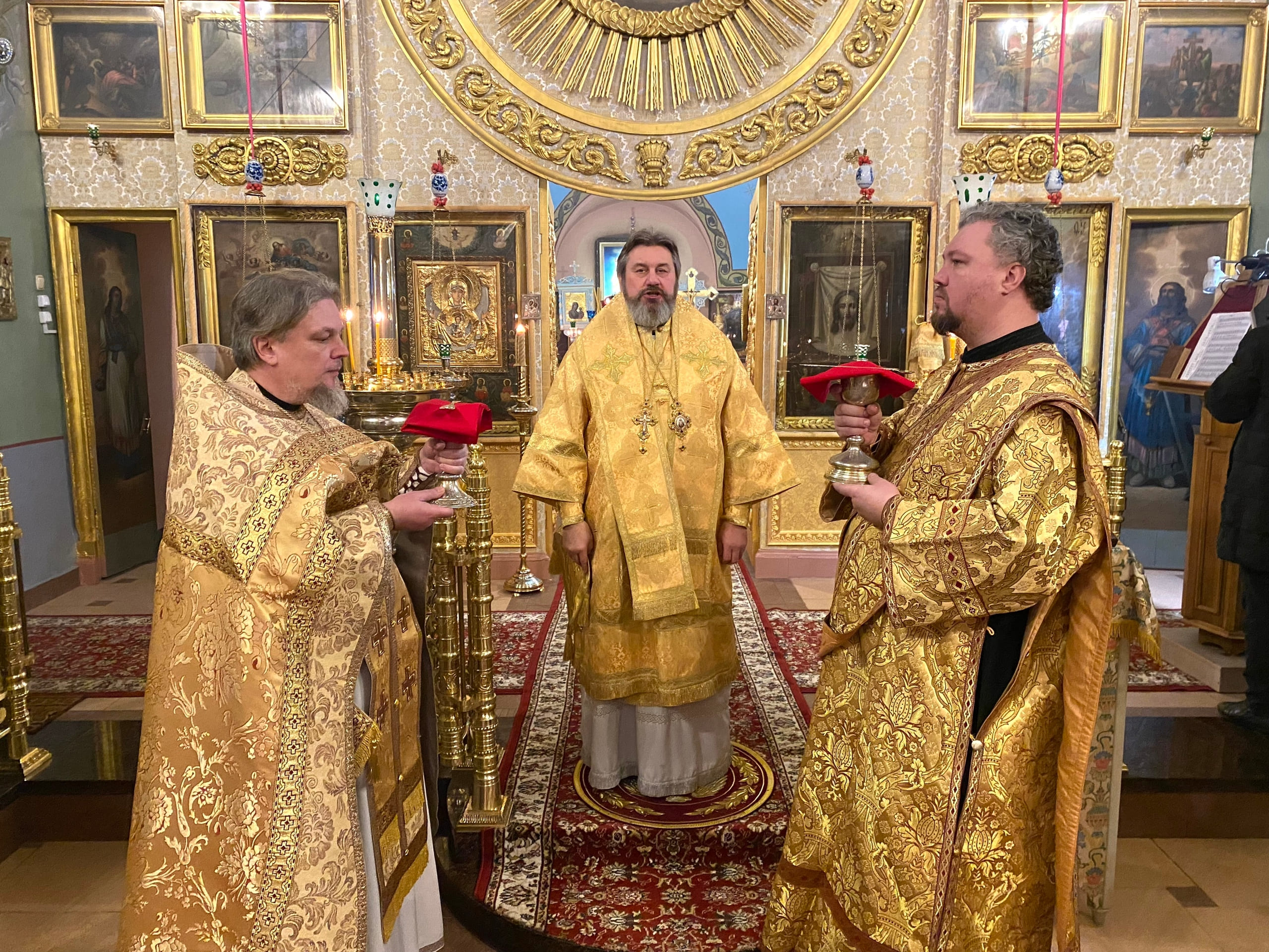 Его Преосвященству сослужили: секретарь епархиального управления иерей Антоний Чуть, благочинный Кольчугинского церковного округа протоиерей Анатолий Балыкин, игумен Серафим (Котенев), настоятель храма игумен Георгий (Хлебников) и протоиерей Владимир Бочков.