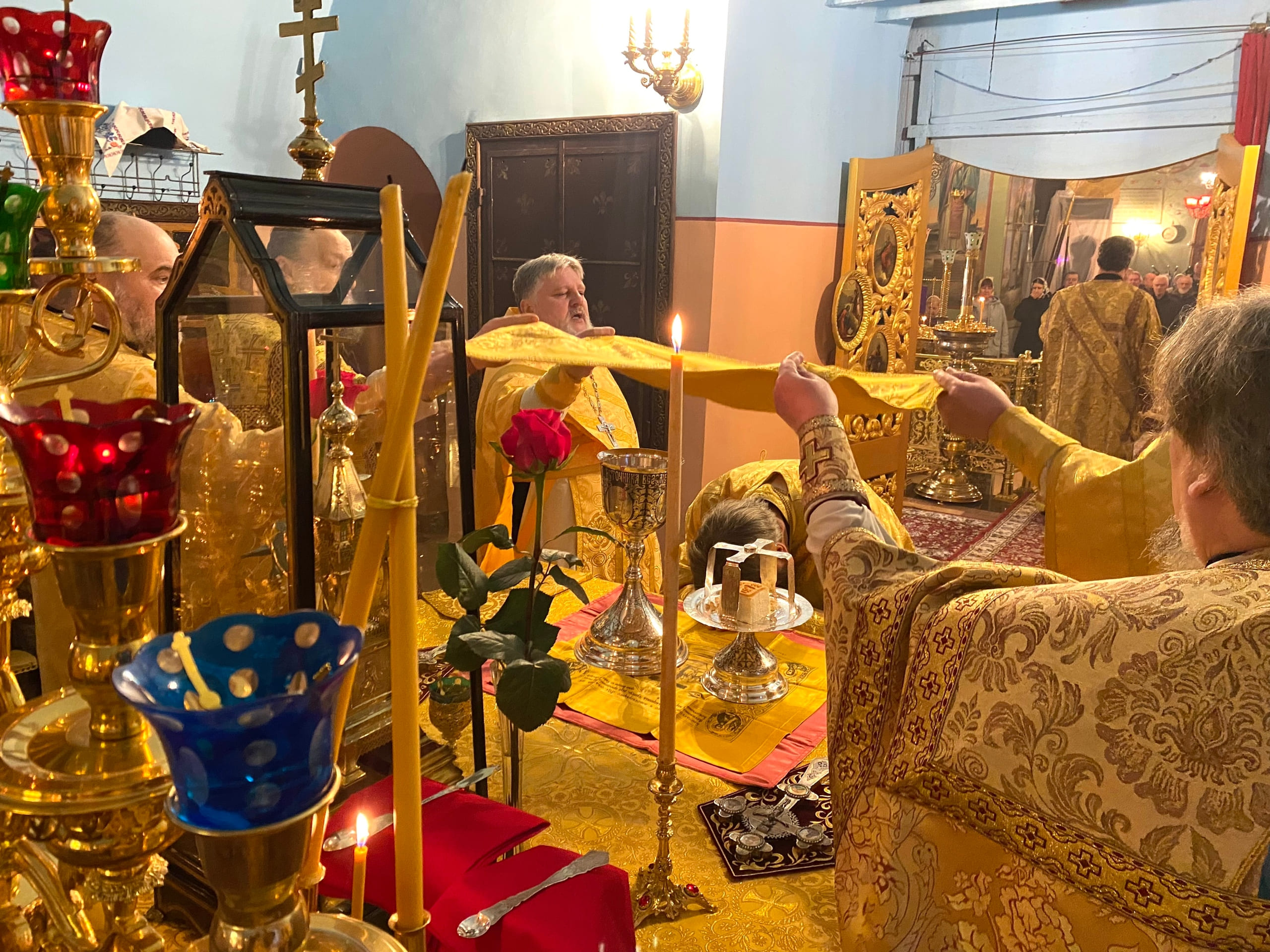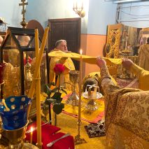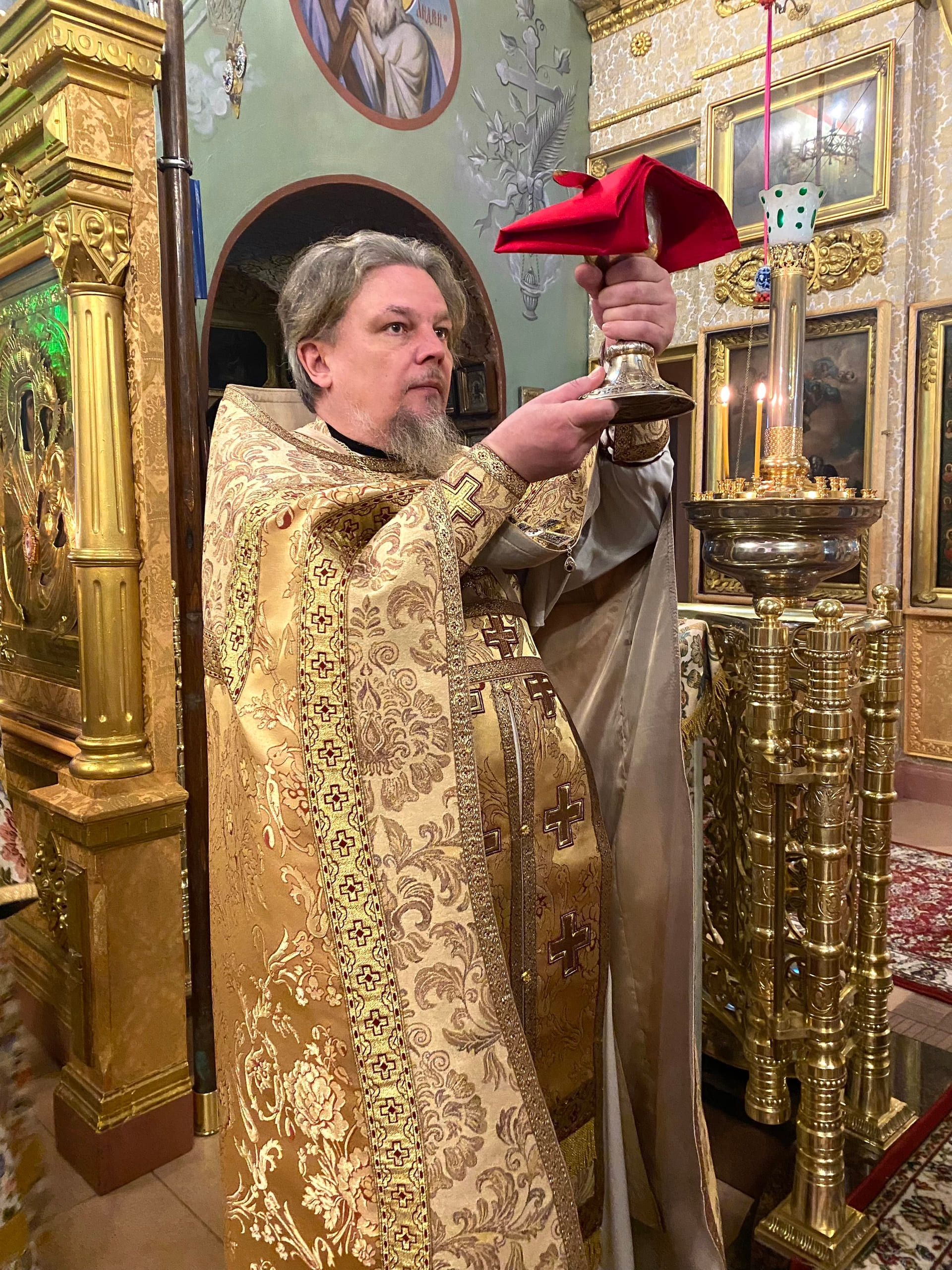21 декабря 2025 года в 28-ю неделю по Пятидесятнице, день памяти прп. Патапия, Преосвященный Стефан, епископ Александровский и Юрьев-Польский, совершил Божественную литургию в Свято-Покровском храме с. Давыдовское.