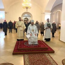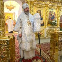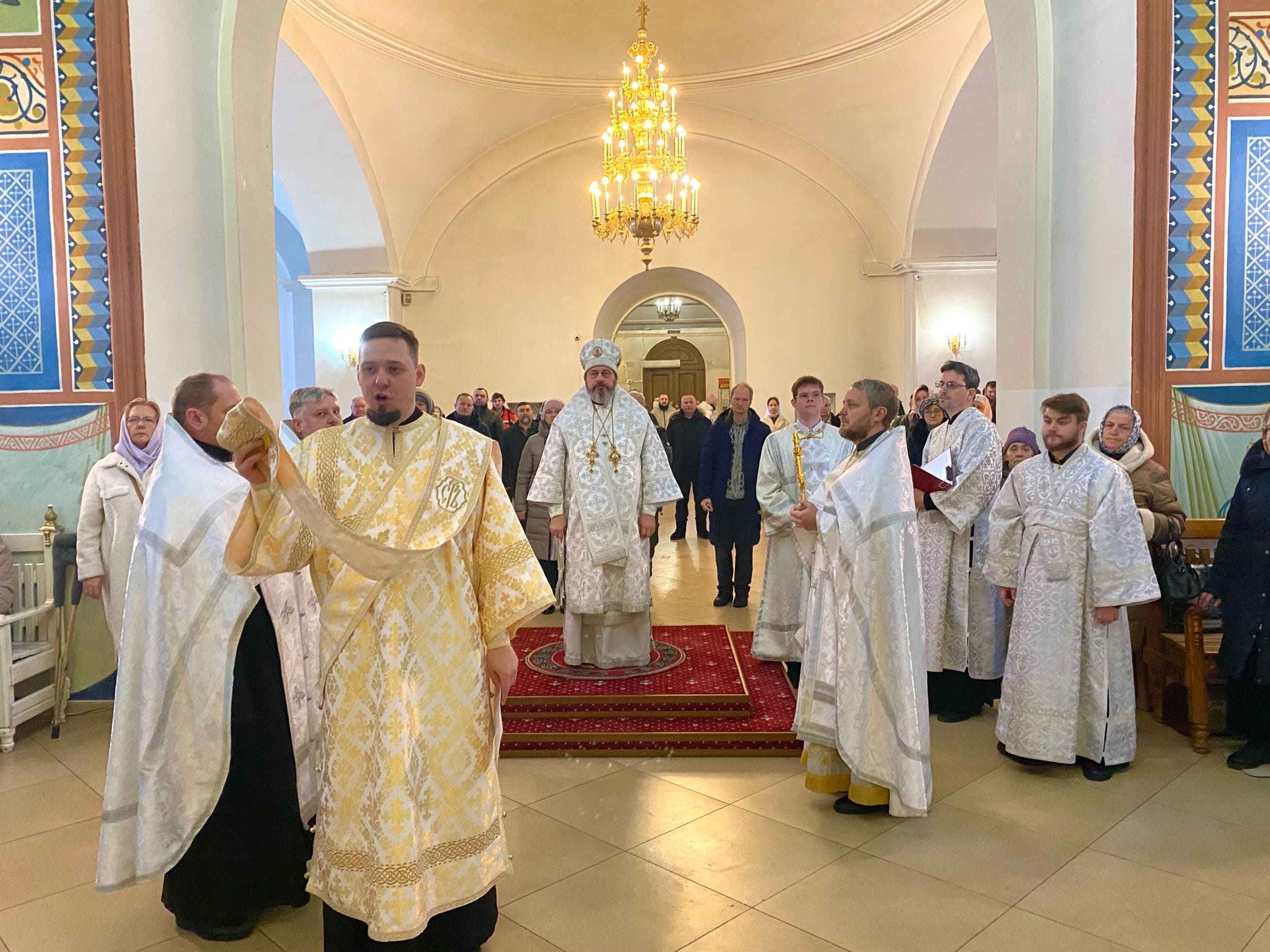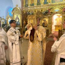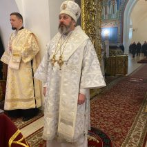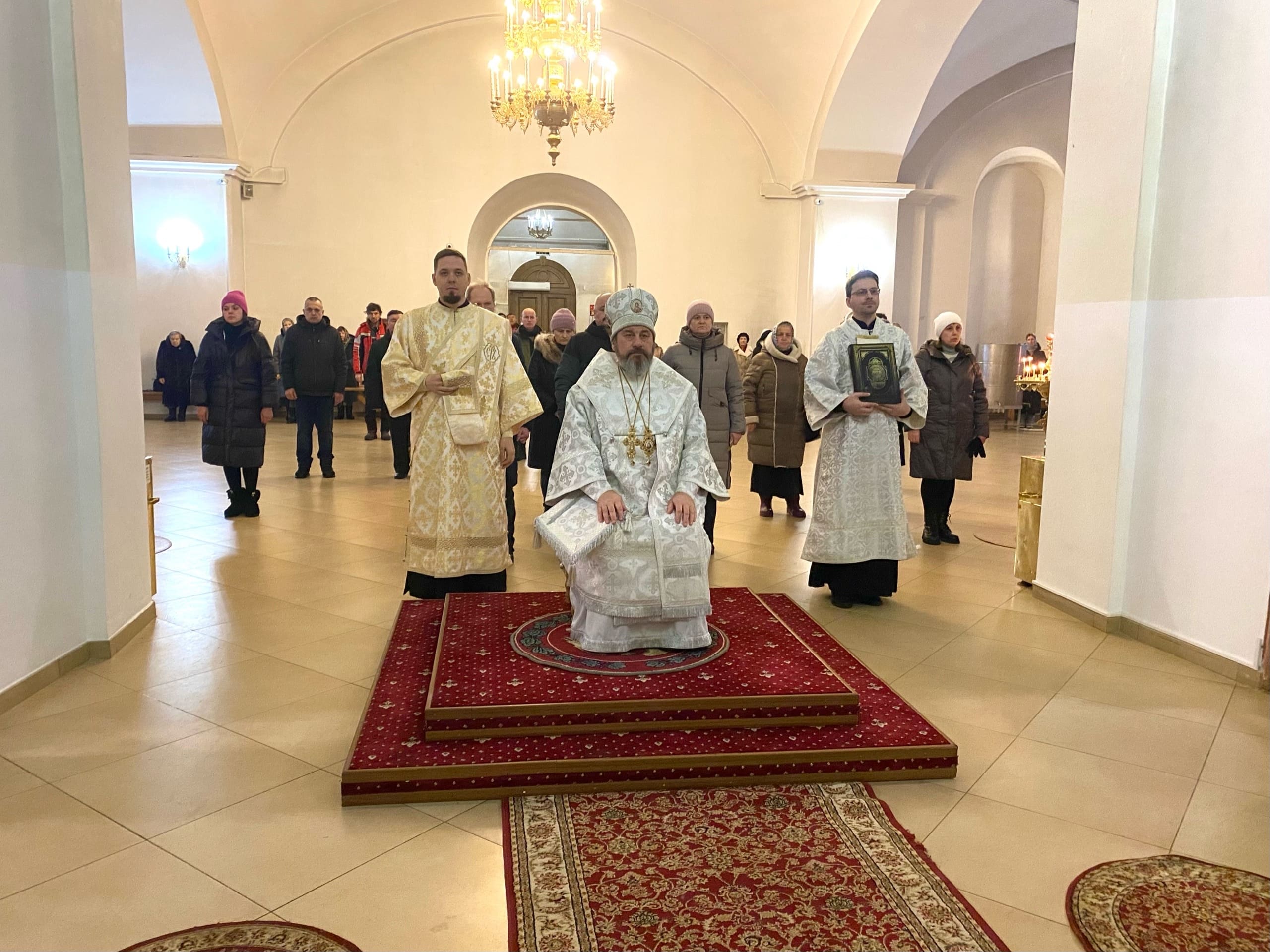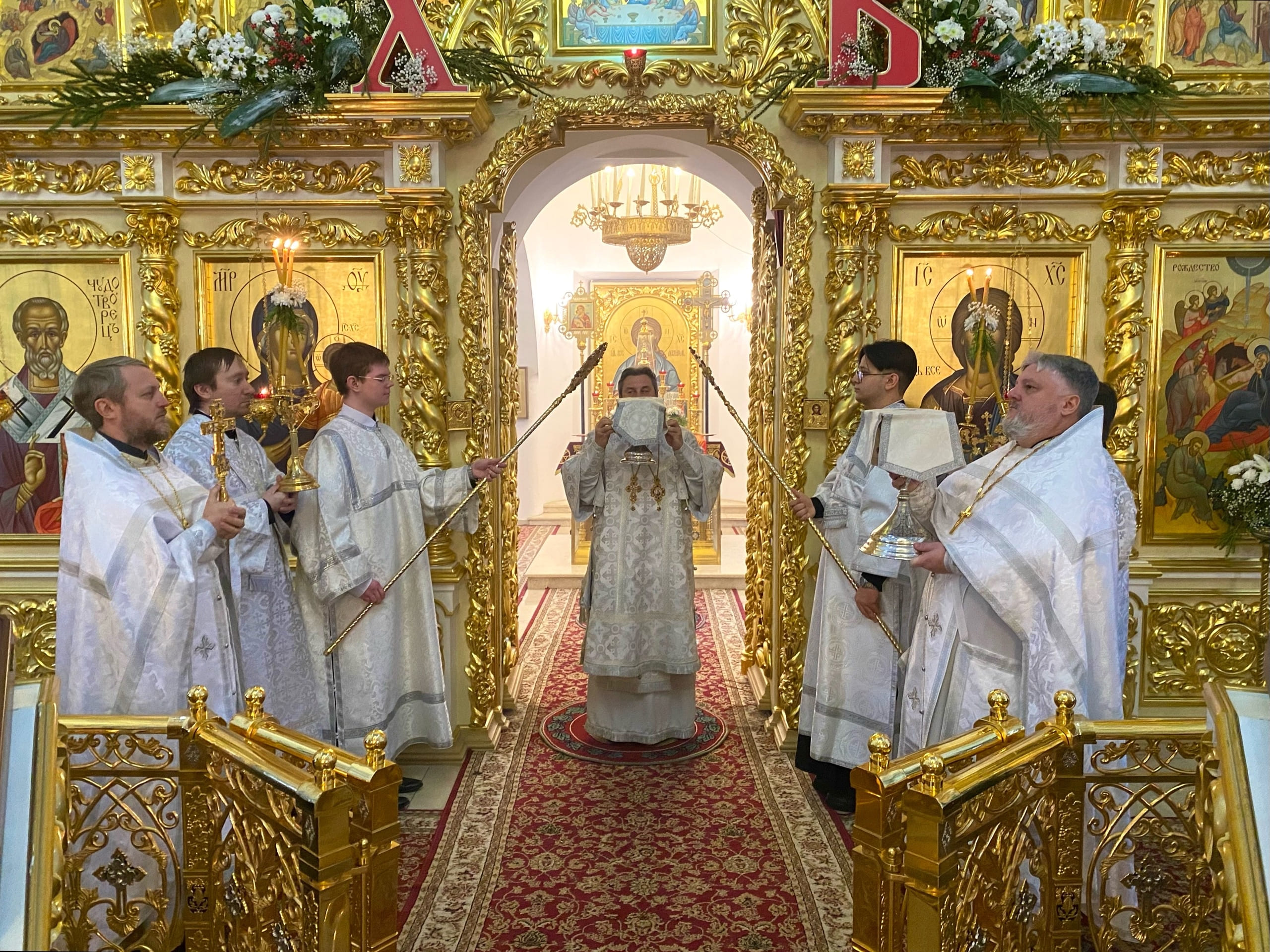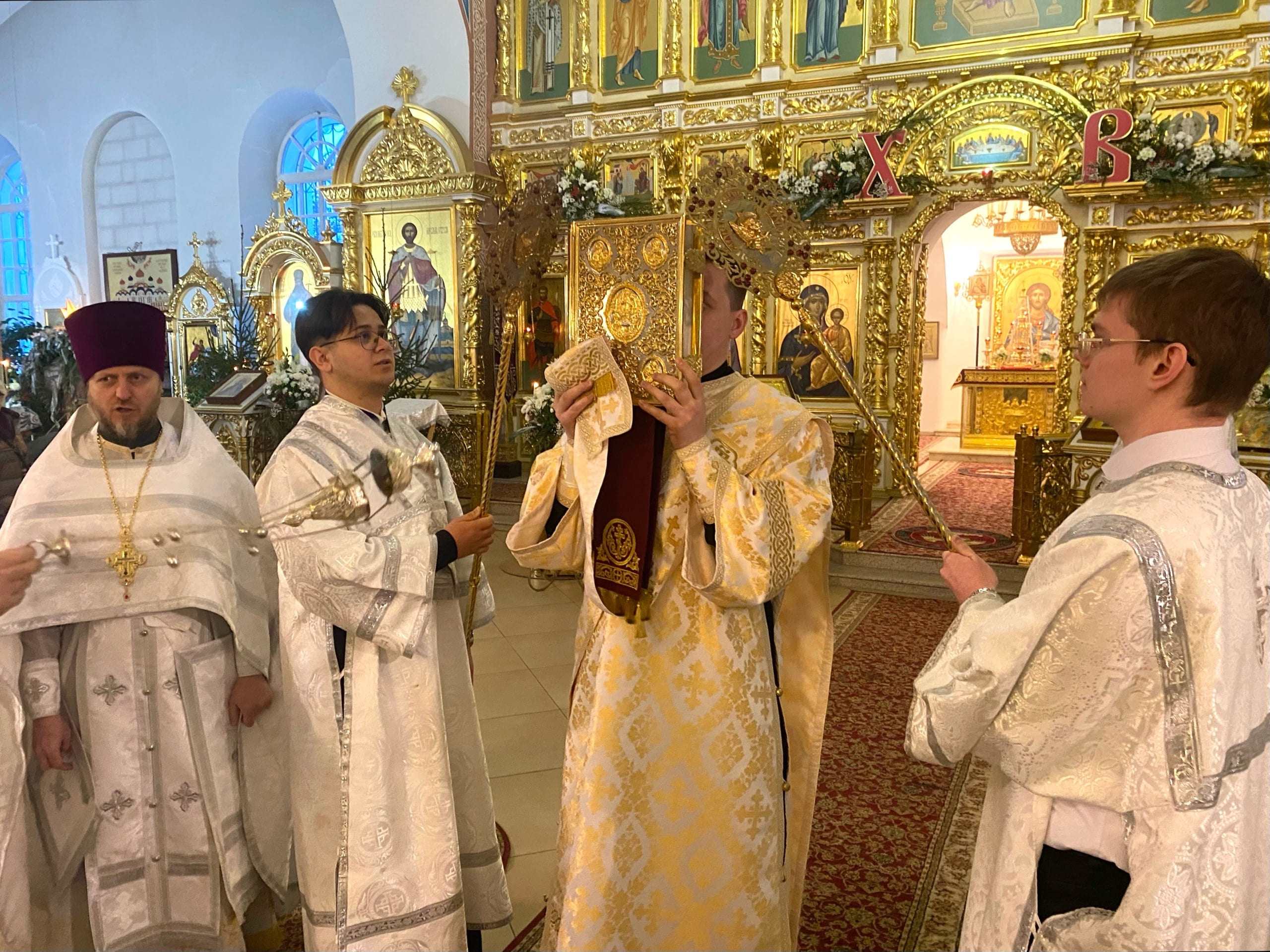 Его Преосвященству сослужили: секретарь епархиального управления иерей Антоний Чуть и иерей Алексий Ануфриев.