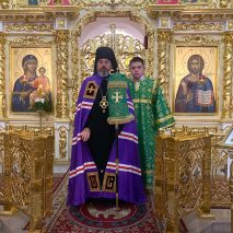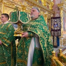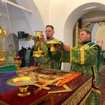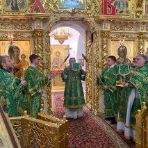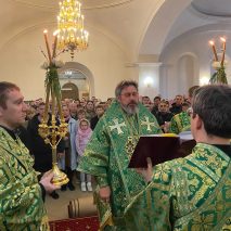 Его Преосвященству сослужили: секретарь епархиального управления иерей Антоний Чуть и иерей Алексий Ануфриев.