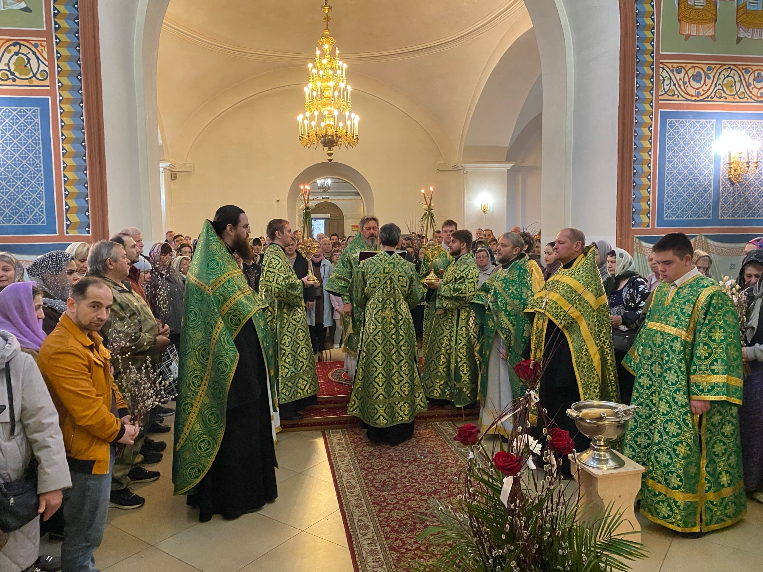В завершение богослужения был совершен чин славления празднику и прочитана молитва на освящение ветвей вербы.