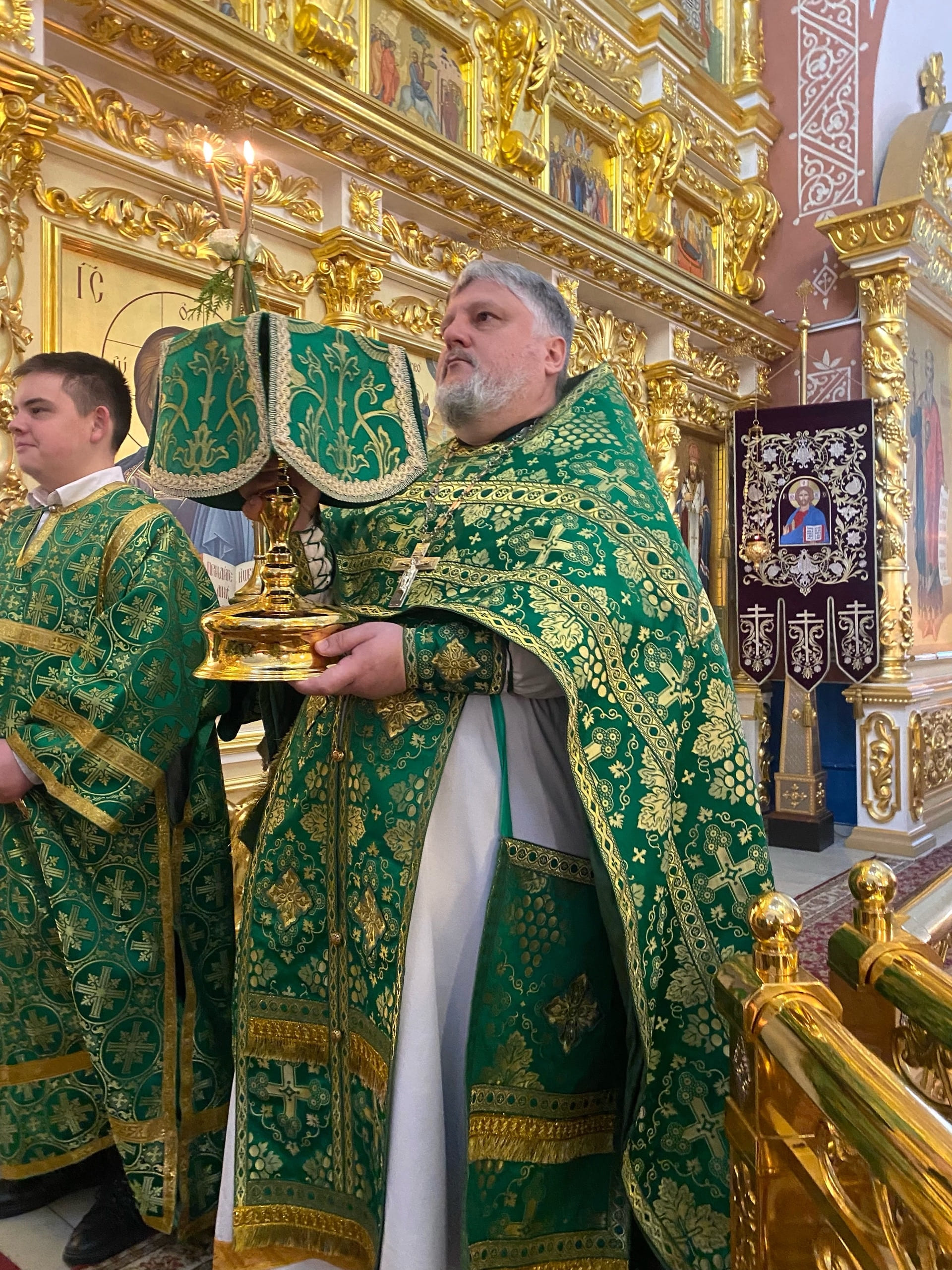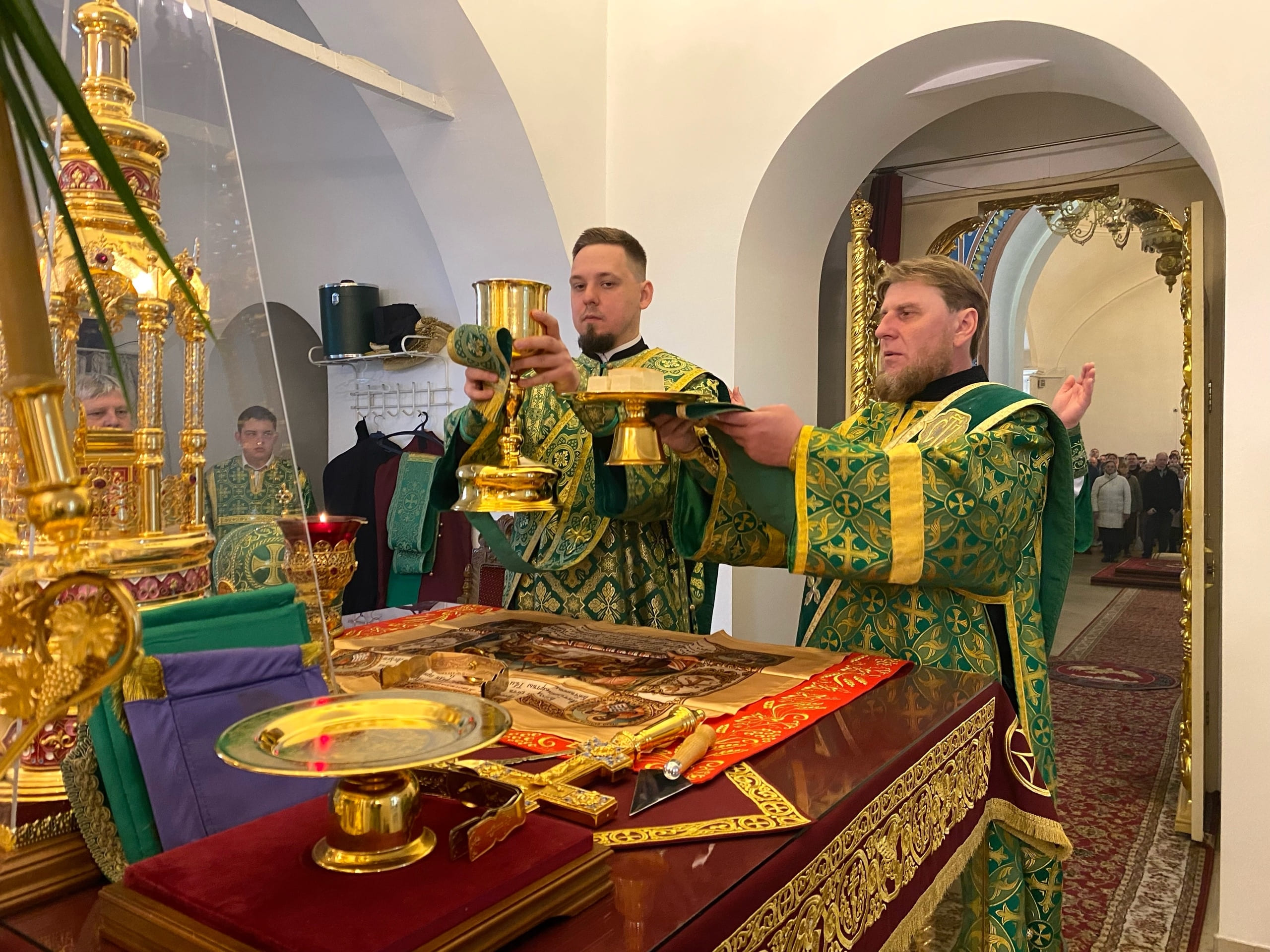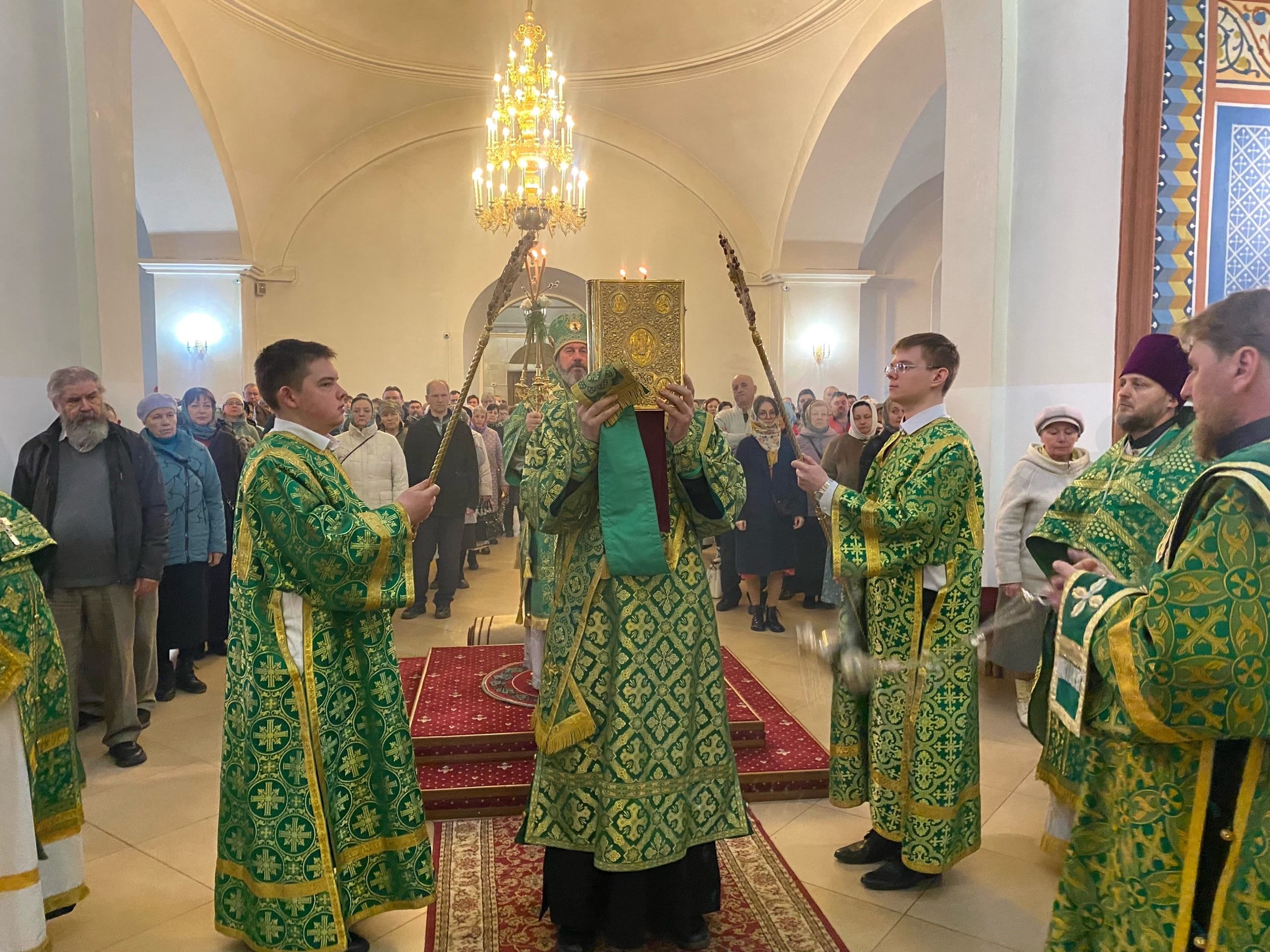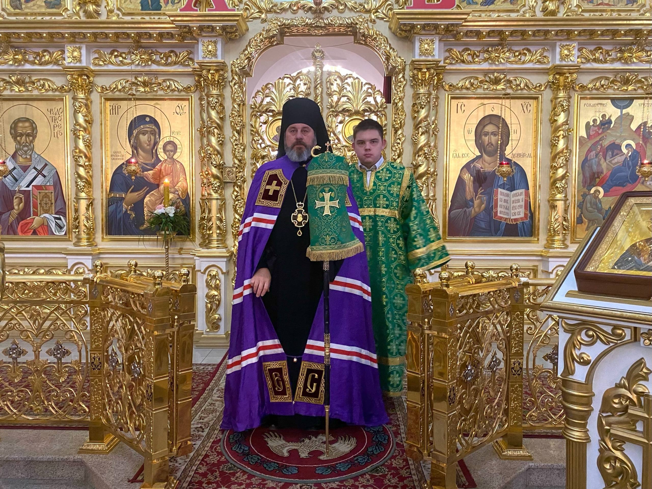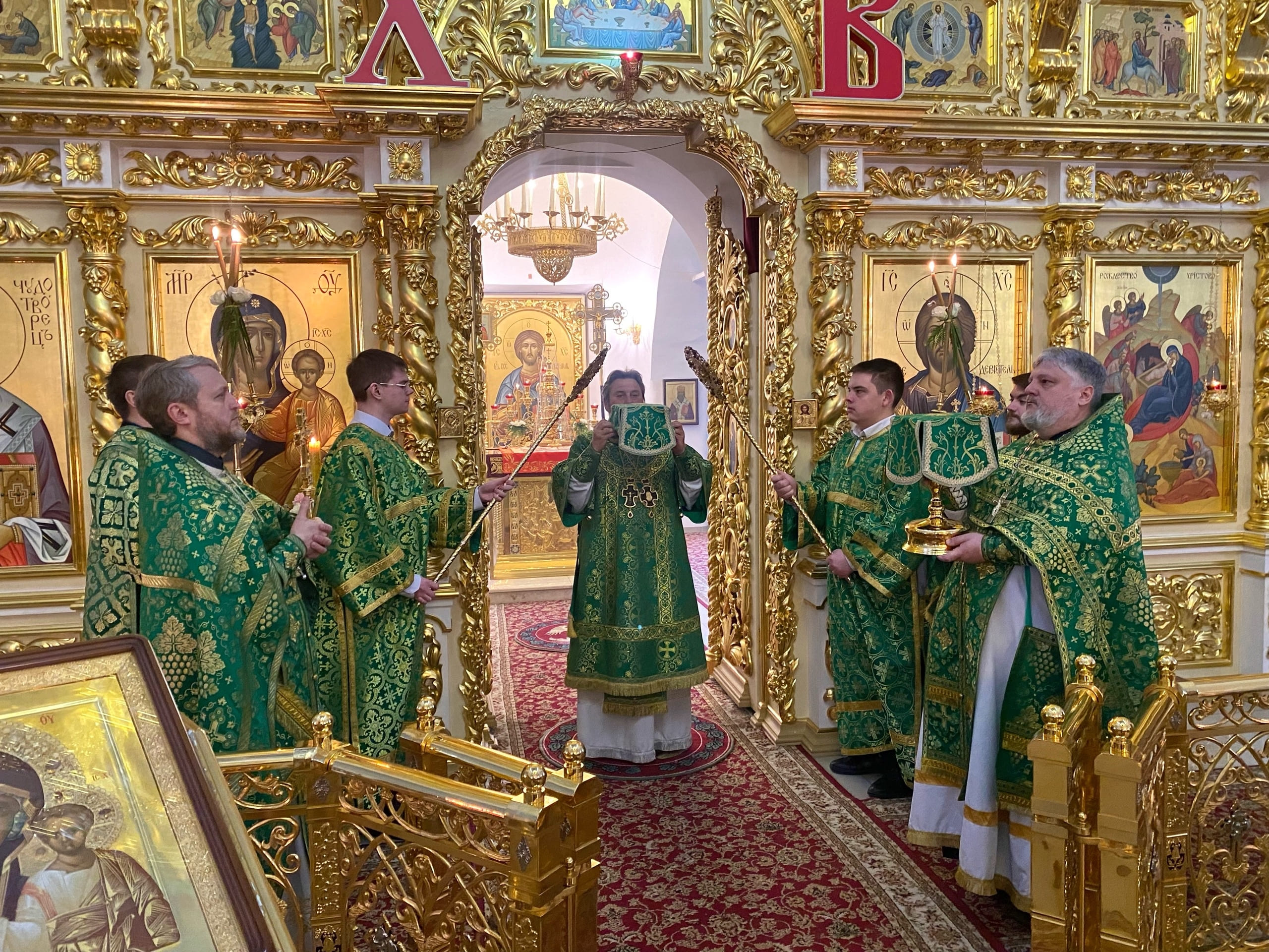 Его Преосвященству сослужили: секретарь епархиального управления иерей Антоний Чуть и иерей Алексий Ануфриев.
