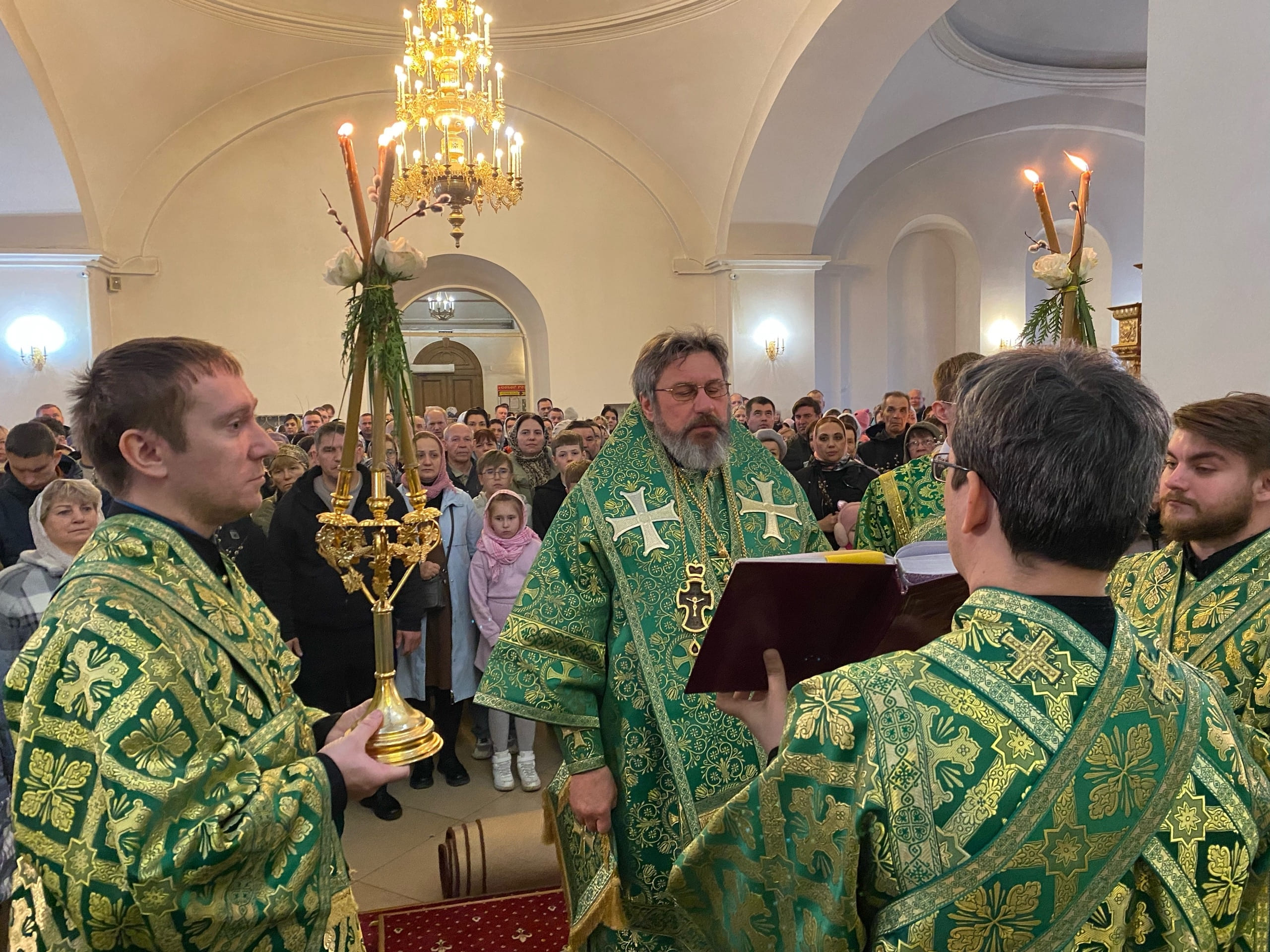 5 апреля 2026 года, в неделю ваий, день праздника Входа Господня во Иерусалим, Преосвященный Стефан, епископ Александровский и Юрьев-Польский, совершил Божественную литургию в Христо-Рождественском кафедральном соборе города Александрова.