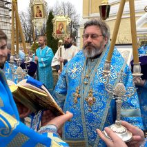 На сугубой ектении звучали особые прошения о мире и Отечестве, владыка прочитал молитву о Святой Руси.