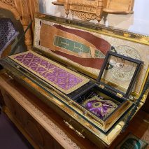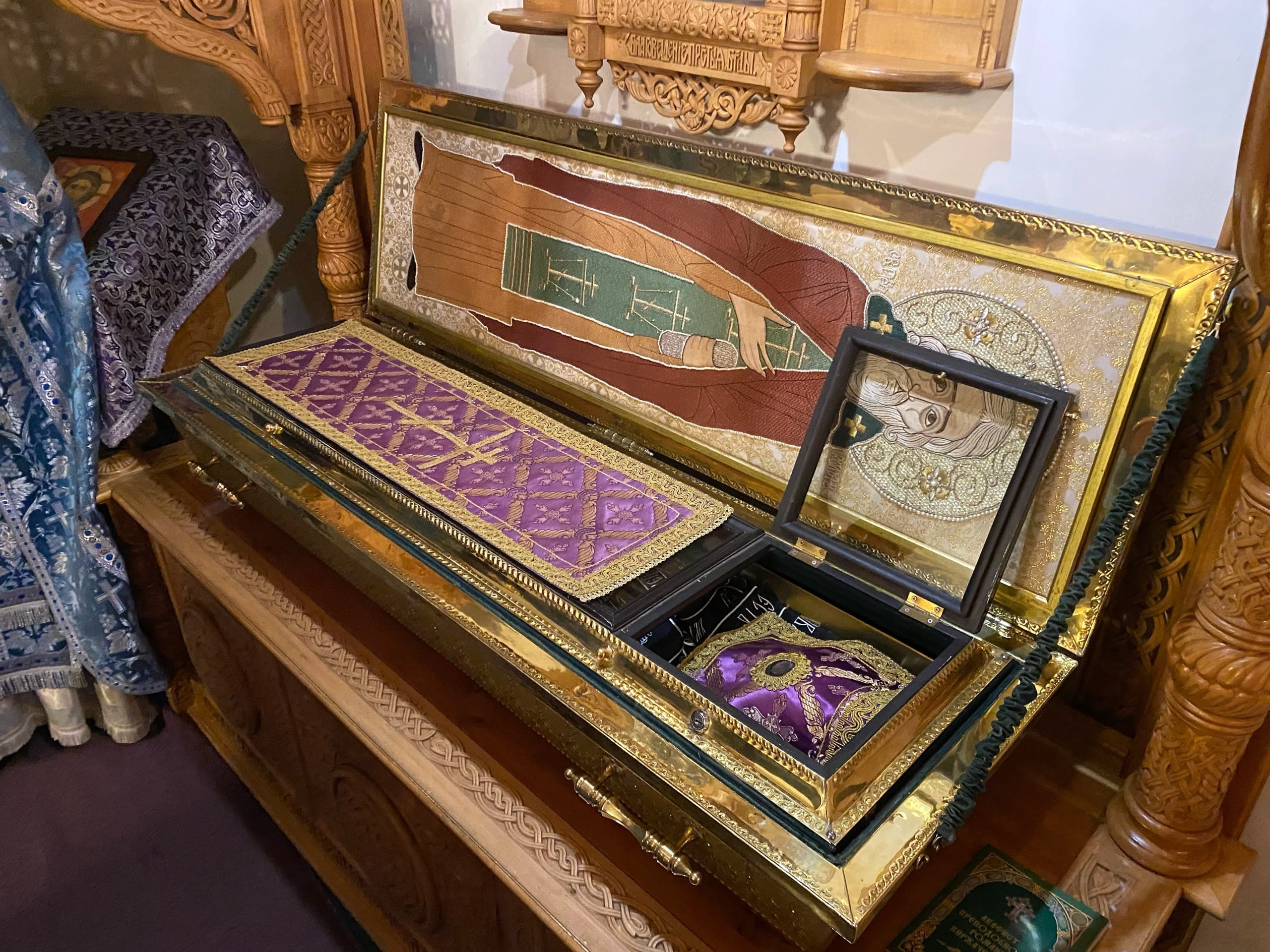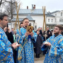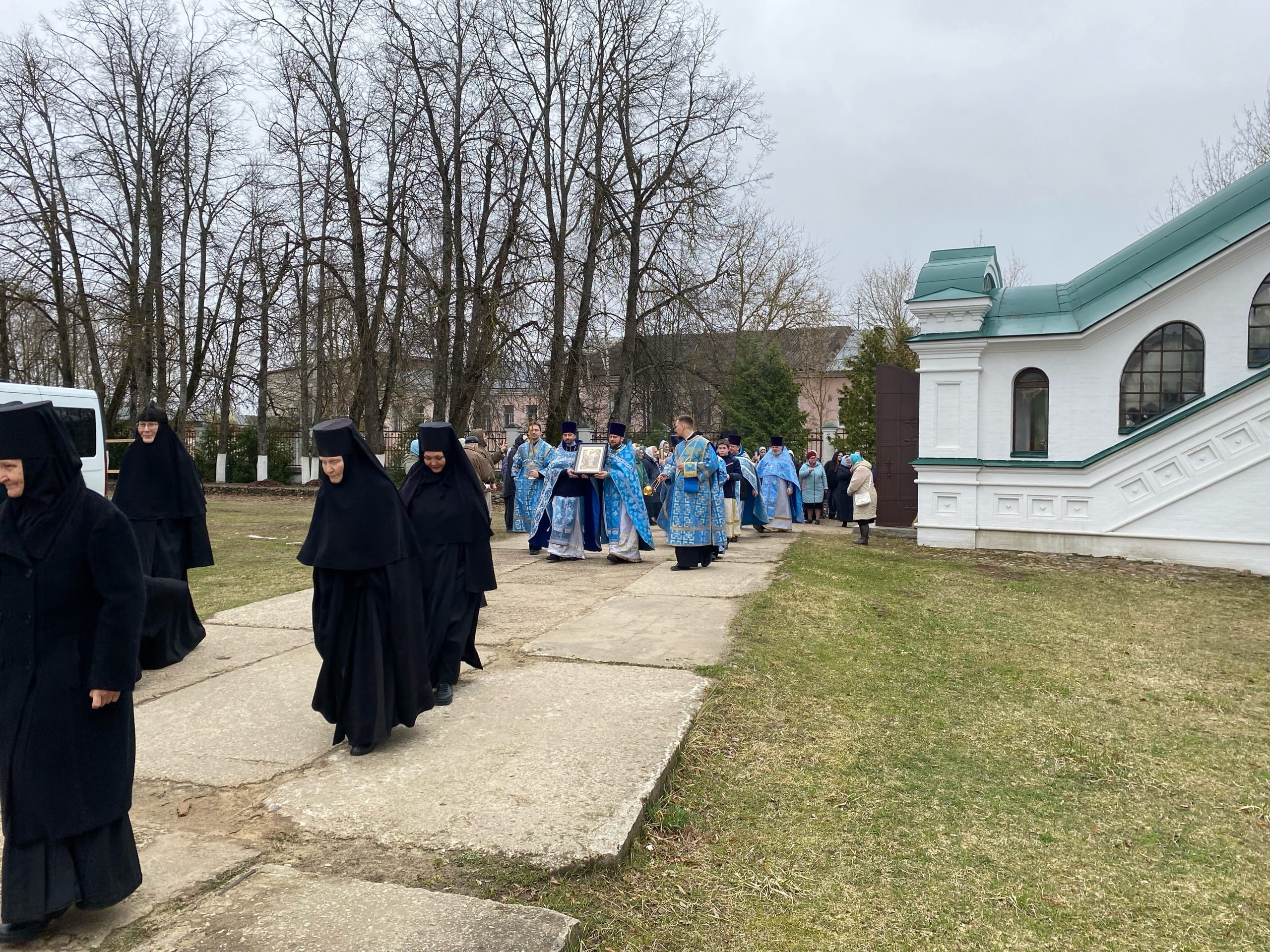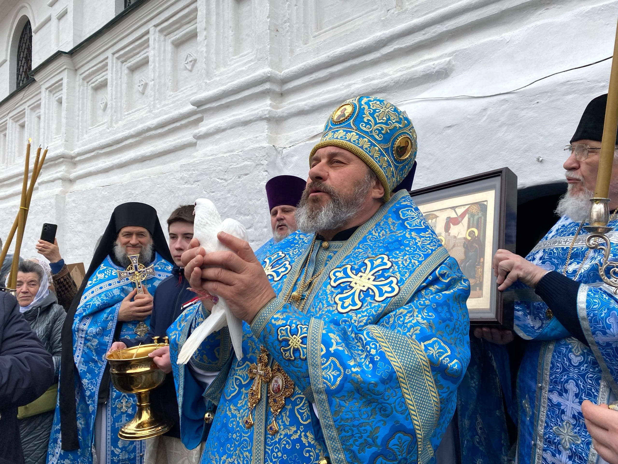 В завершение Божественной литургии вокруг Благовещенского собора был совершен крестный ход. Обойдя храм, шествие проследовал в храм прп. Романа Киржачского, где перед Его святыми мощами был совершен чин славления.