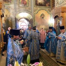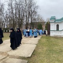 За богослужением молились: настоятельница монастыря игумения Феодора (Трубач), настоятельница Свято-Успенского женского монастыря города Александрова игумения Иоанна (Смуткина), а также сестры обители и паломники.