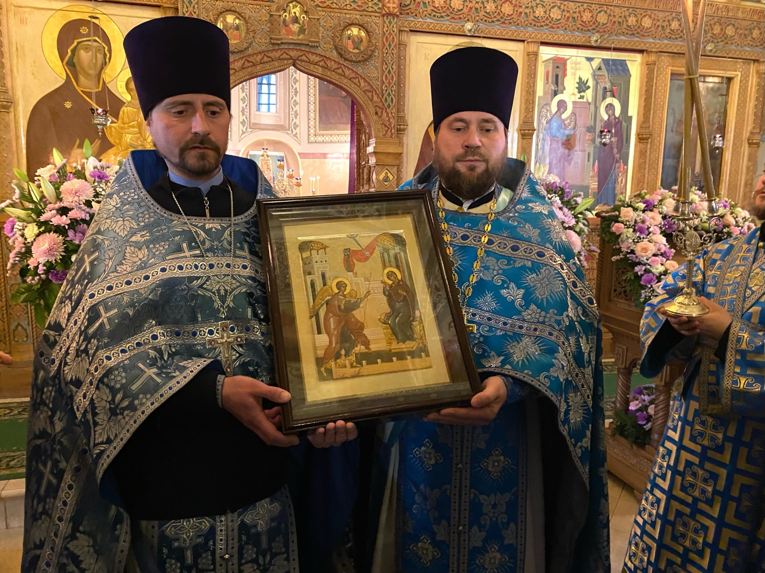 На малом входе, во внимание к усердному пастырскому служению и празднику Святой Пасхи, протоиерей Александр Прокопов и протоиерей Владимир Шлыков удостоены права ношения наперсного креста с украшениями.