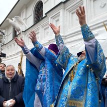 Затем, по традиции, владыка Стефан и священнослужители выпустили в небо белых голубей.