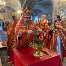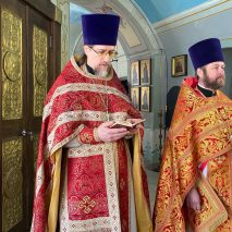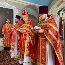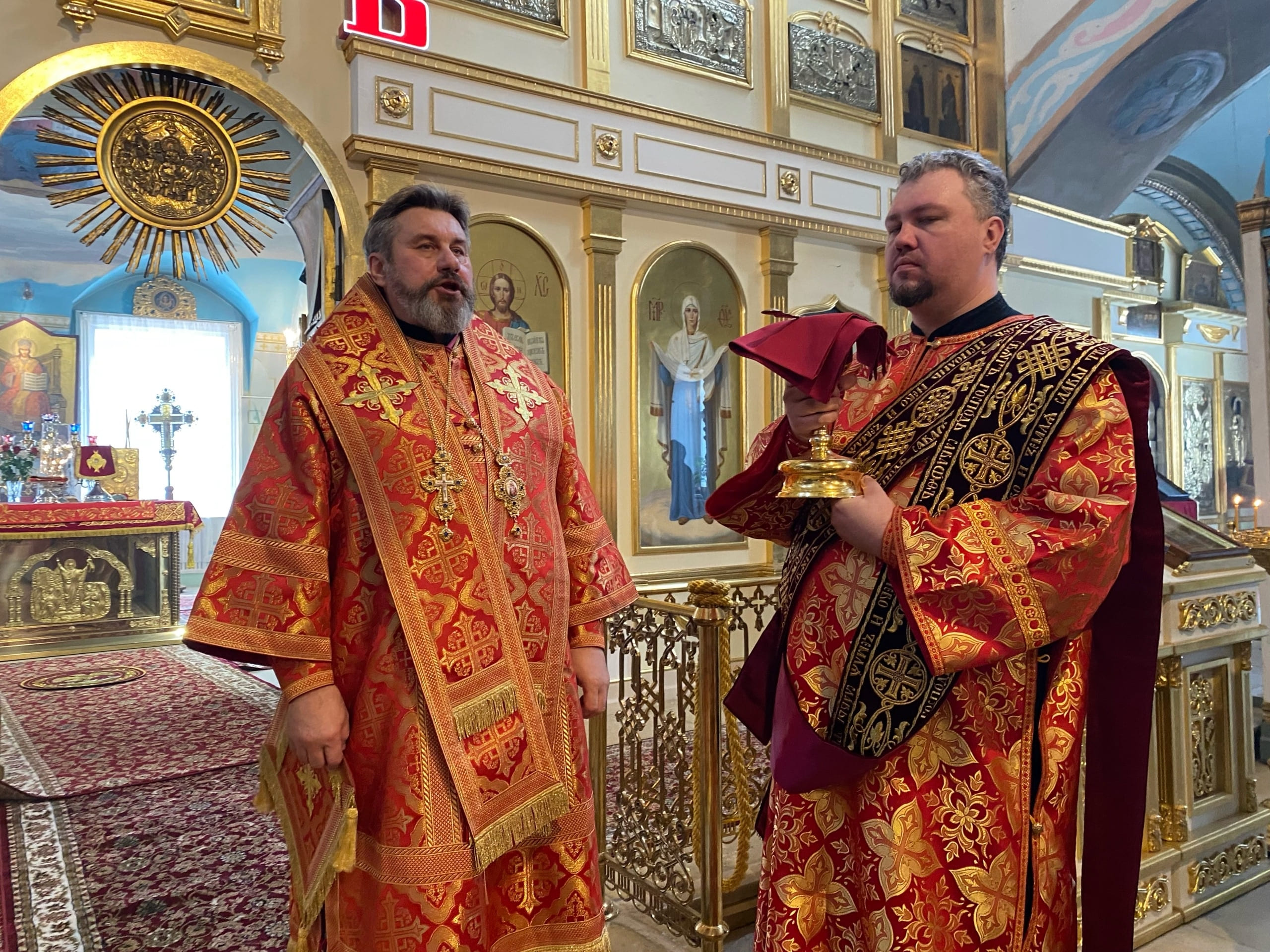 Его Преосвященству сослужили: секретарь епархиального управления иерей Антоний Чуть, благочинный Покровского церковного округа протоиерей Николай Романович и клирики Покровского и Петушинского благочиний.