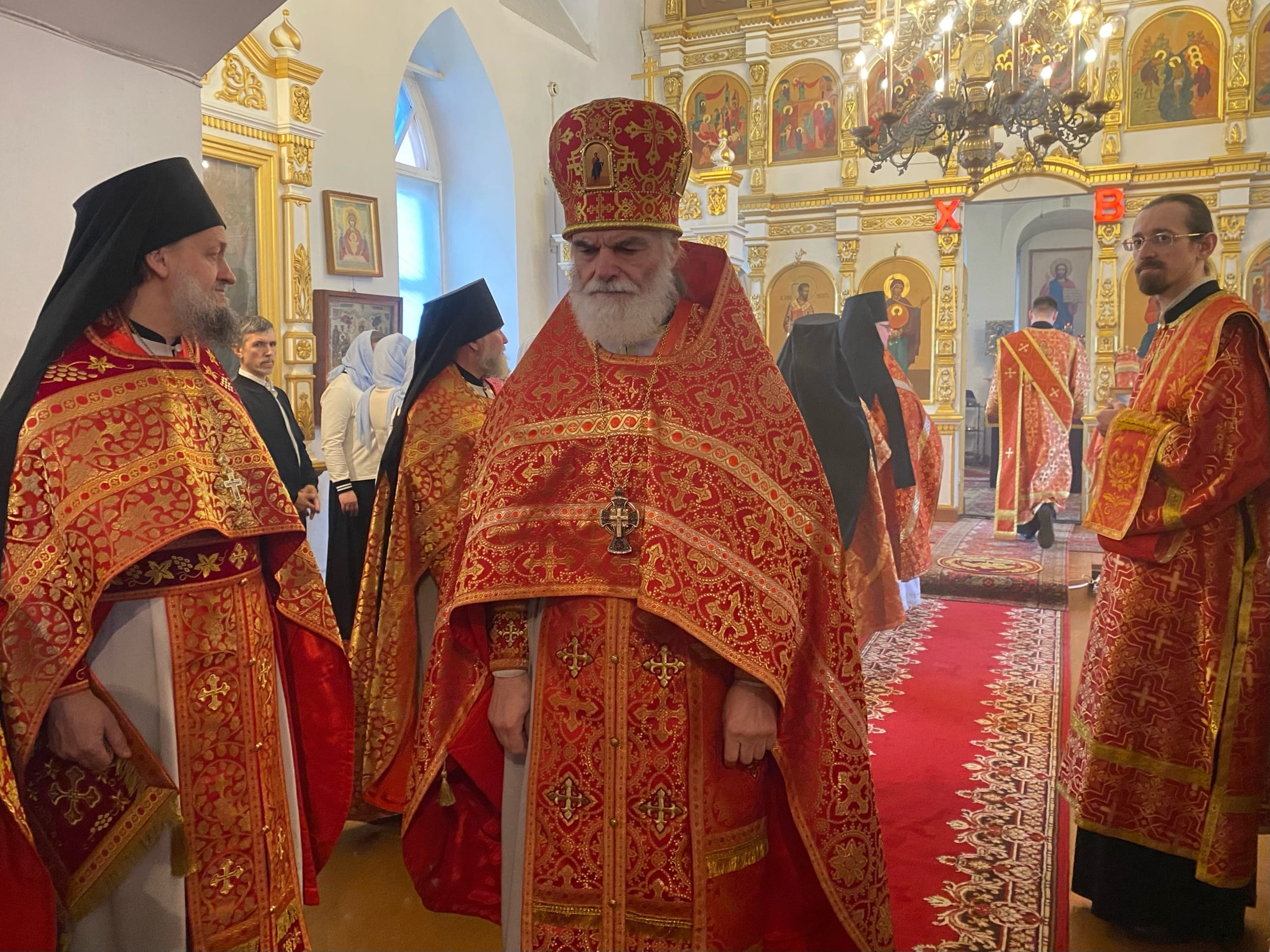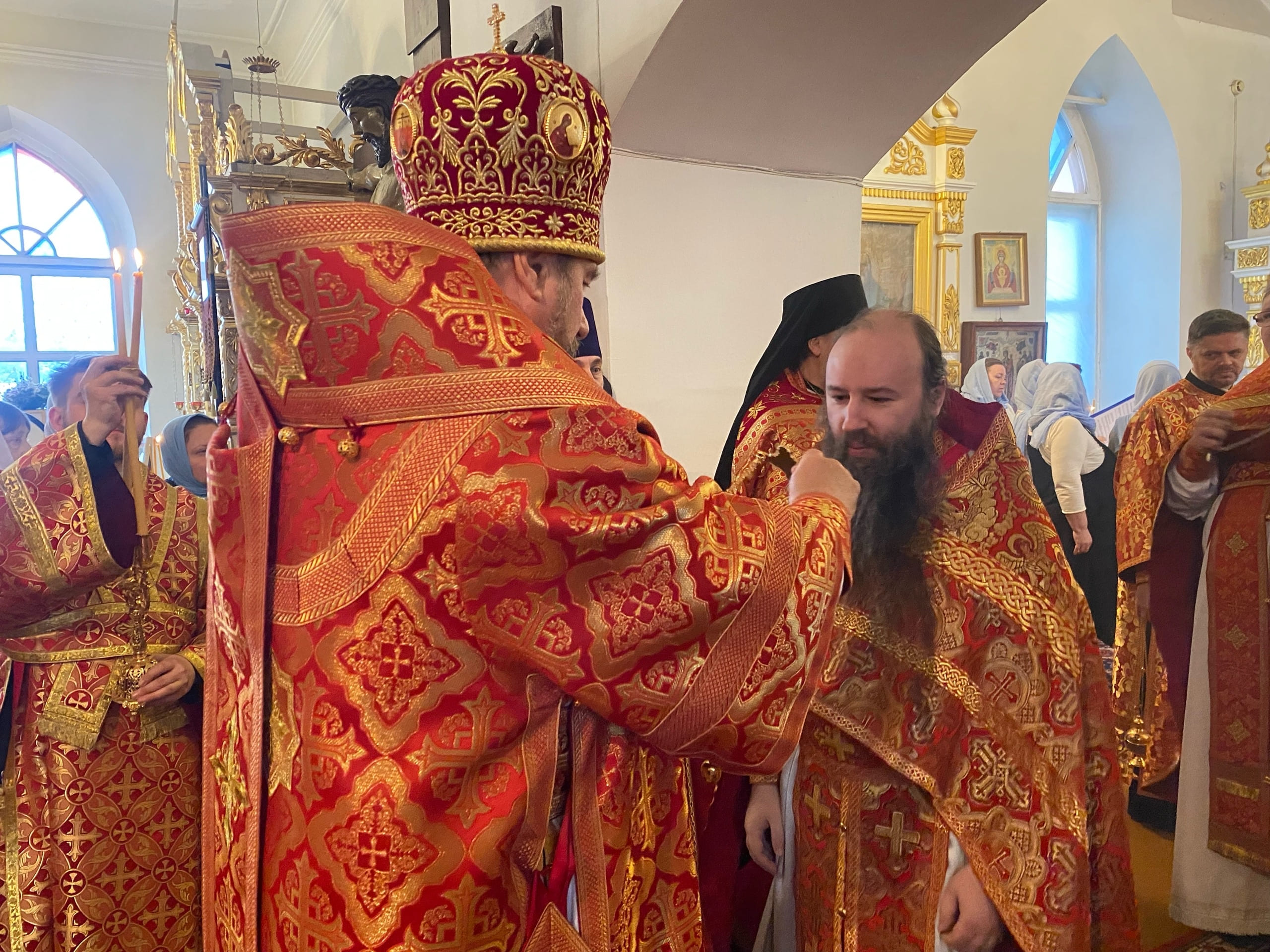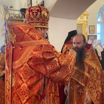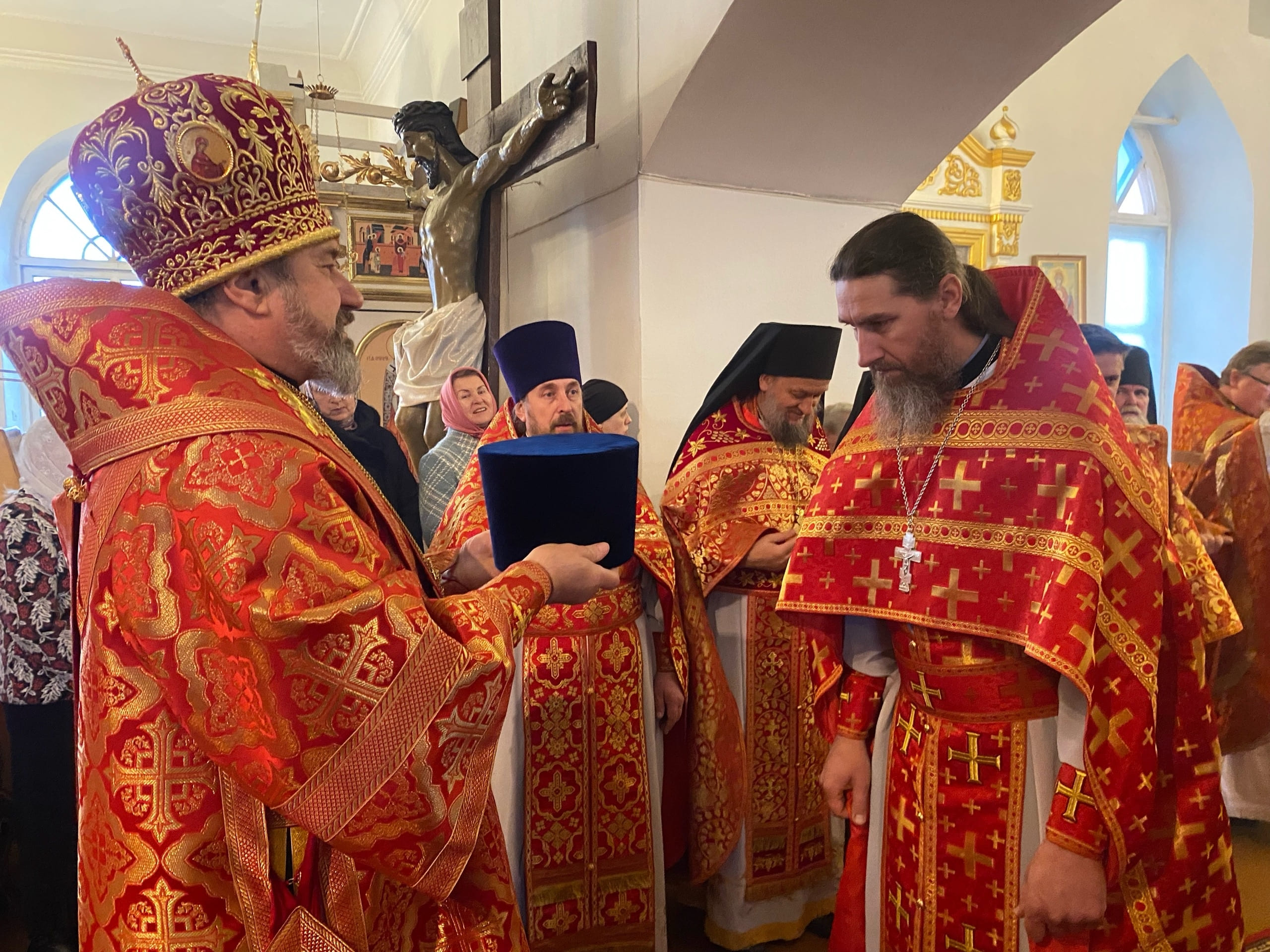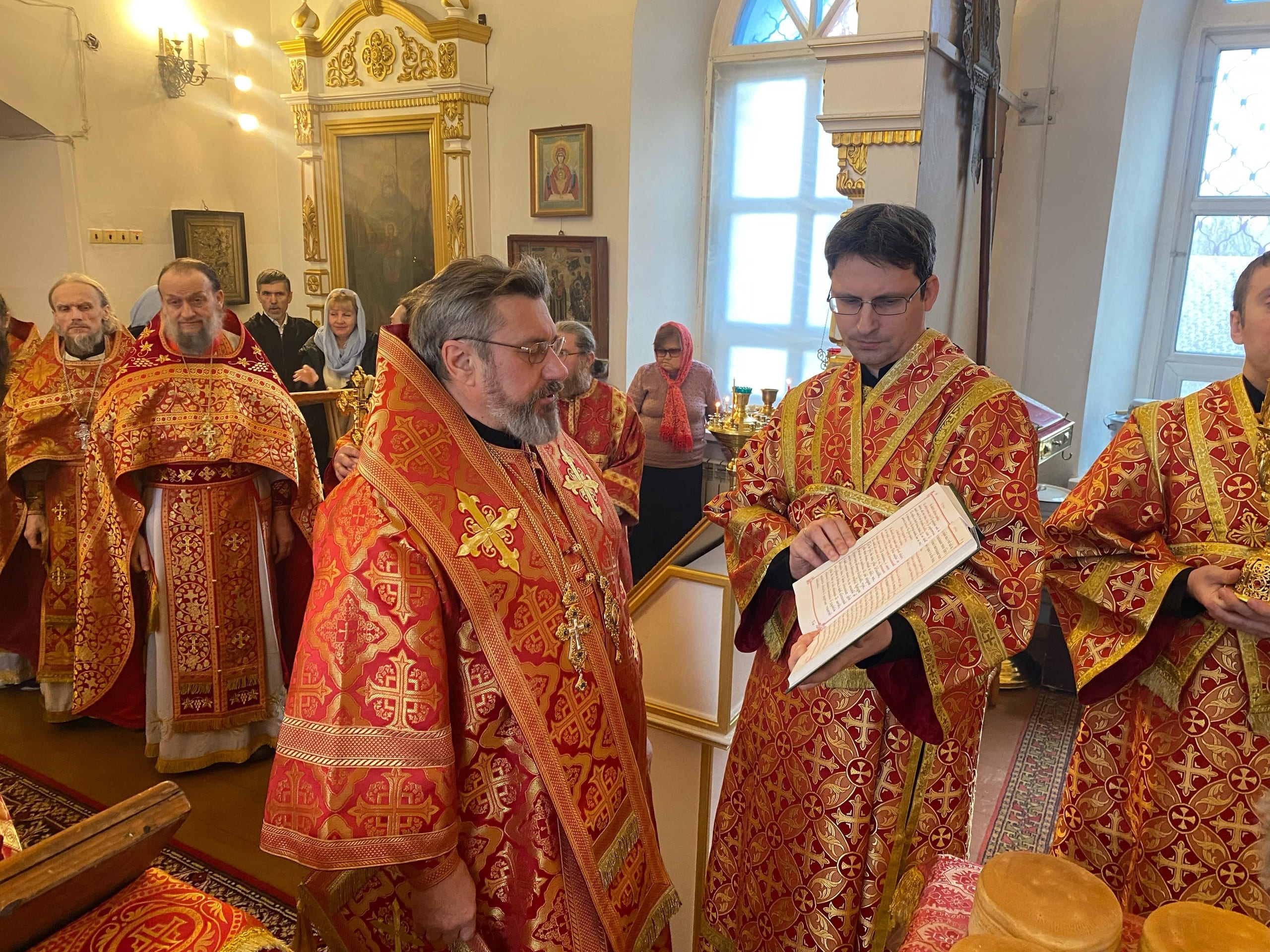 Его Преосвященству сослужили: секретарь епархиального управления иерей Антоний Чуть, благочинный Юрьев-Польского церковного округа протоиерей Сергий Соловьев, настоятель храма протоиерей Георгий Беляков, игумен Серафим (Котенев), а также многочисленное духовенство Юрьев-Польского и монастырского благочиний.