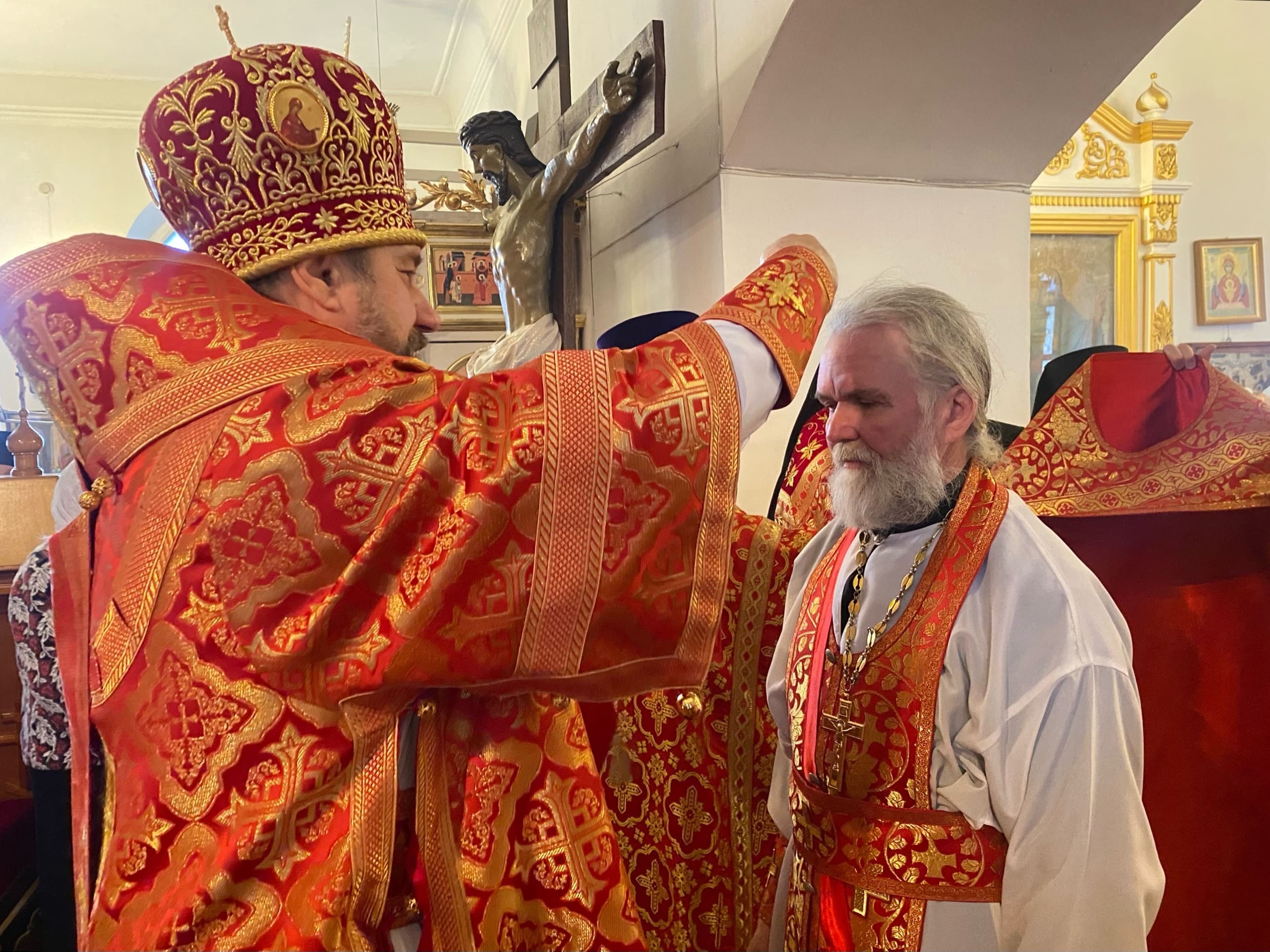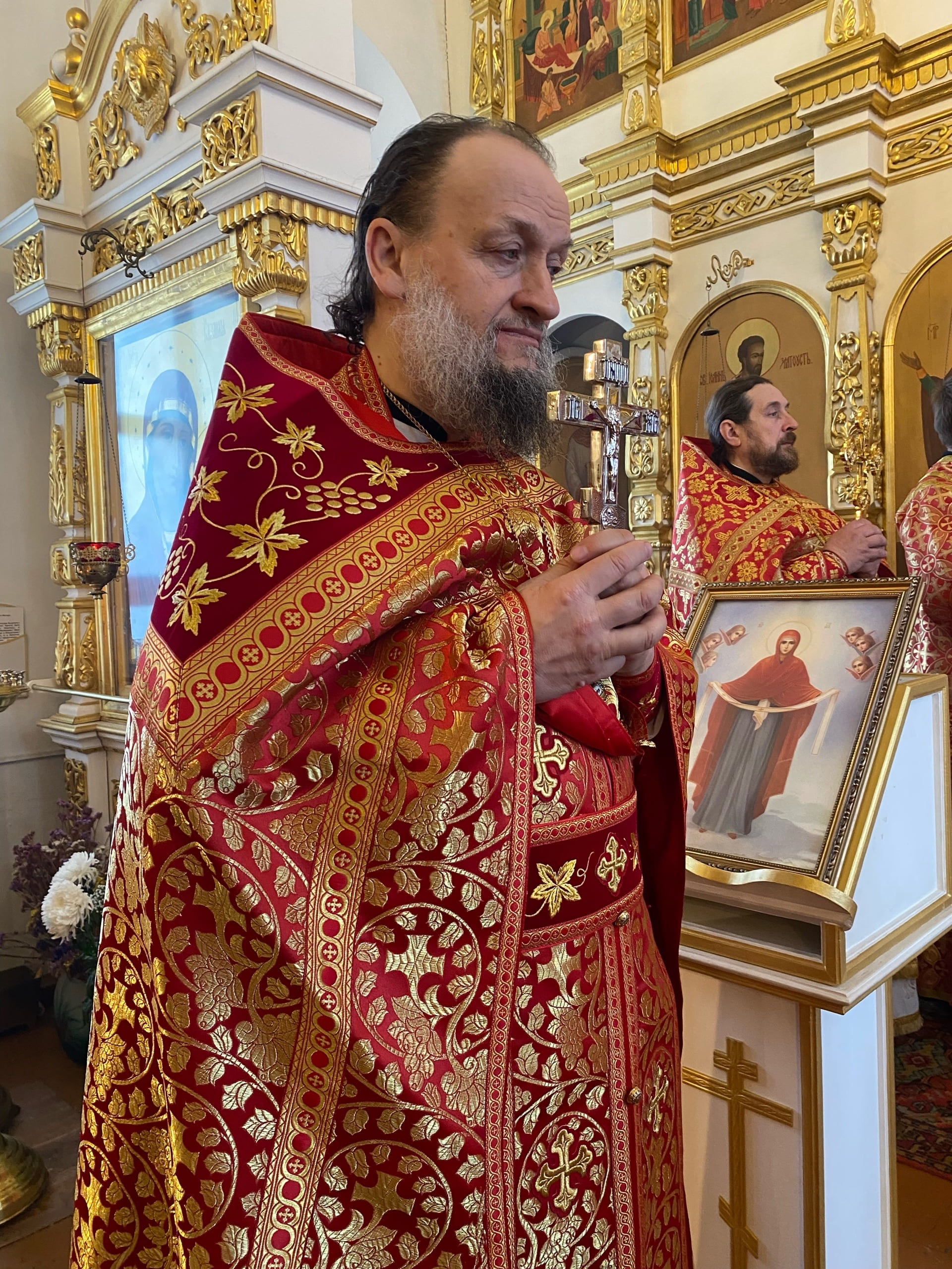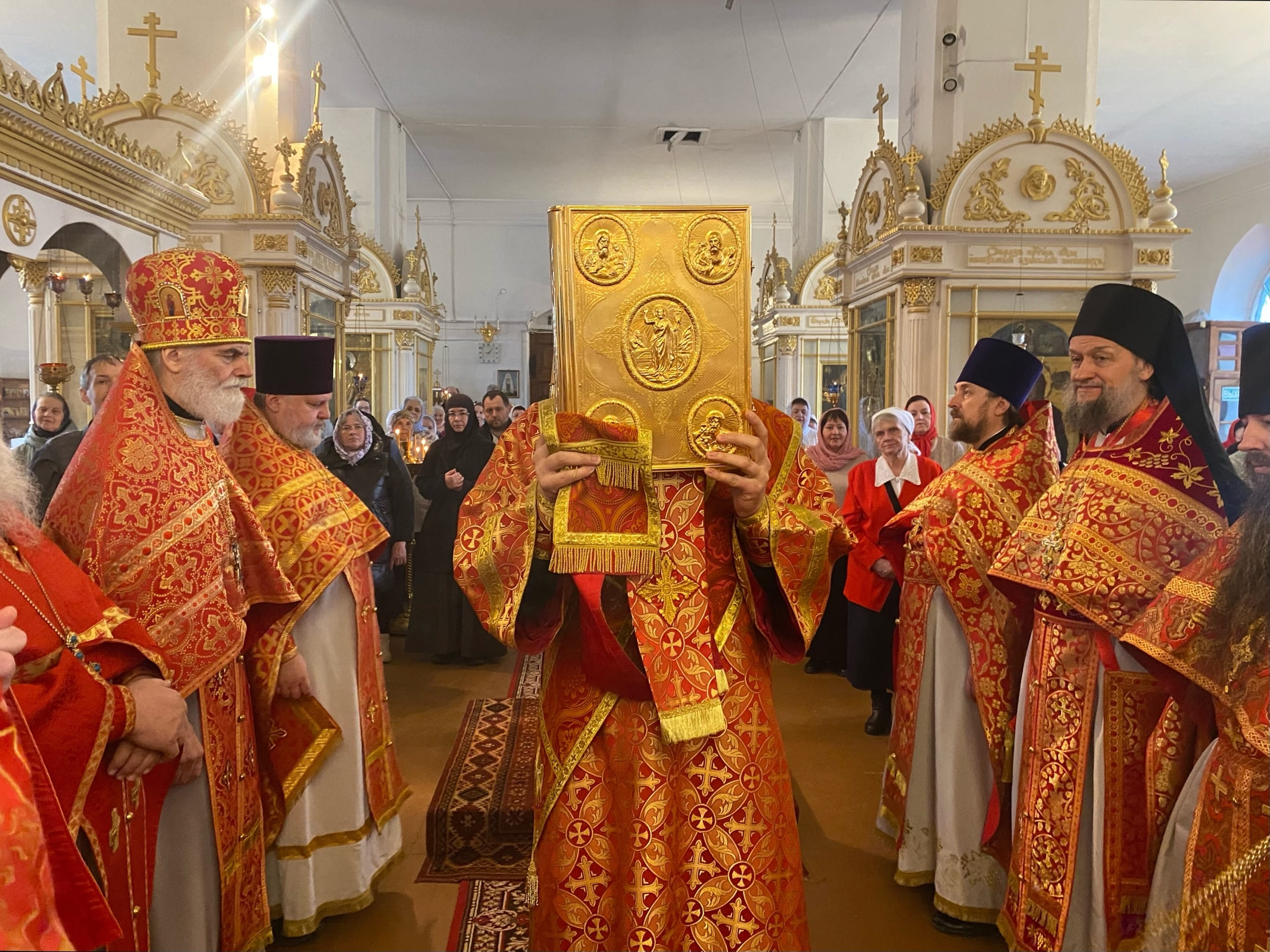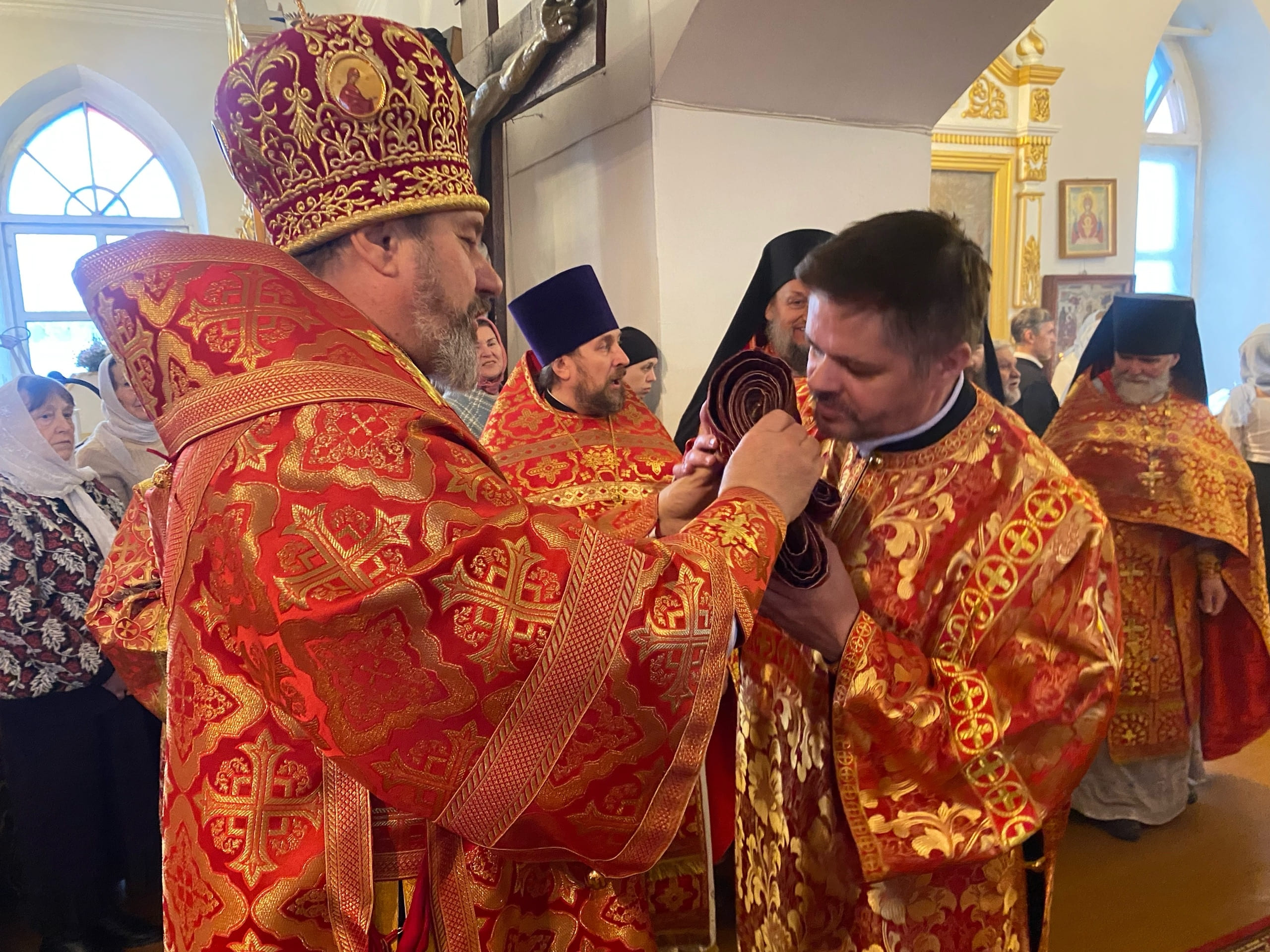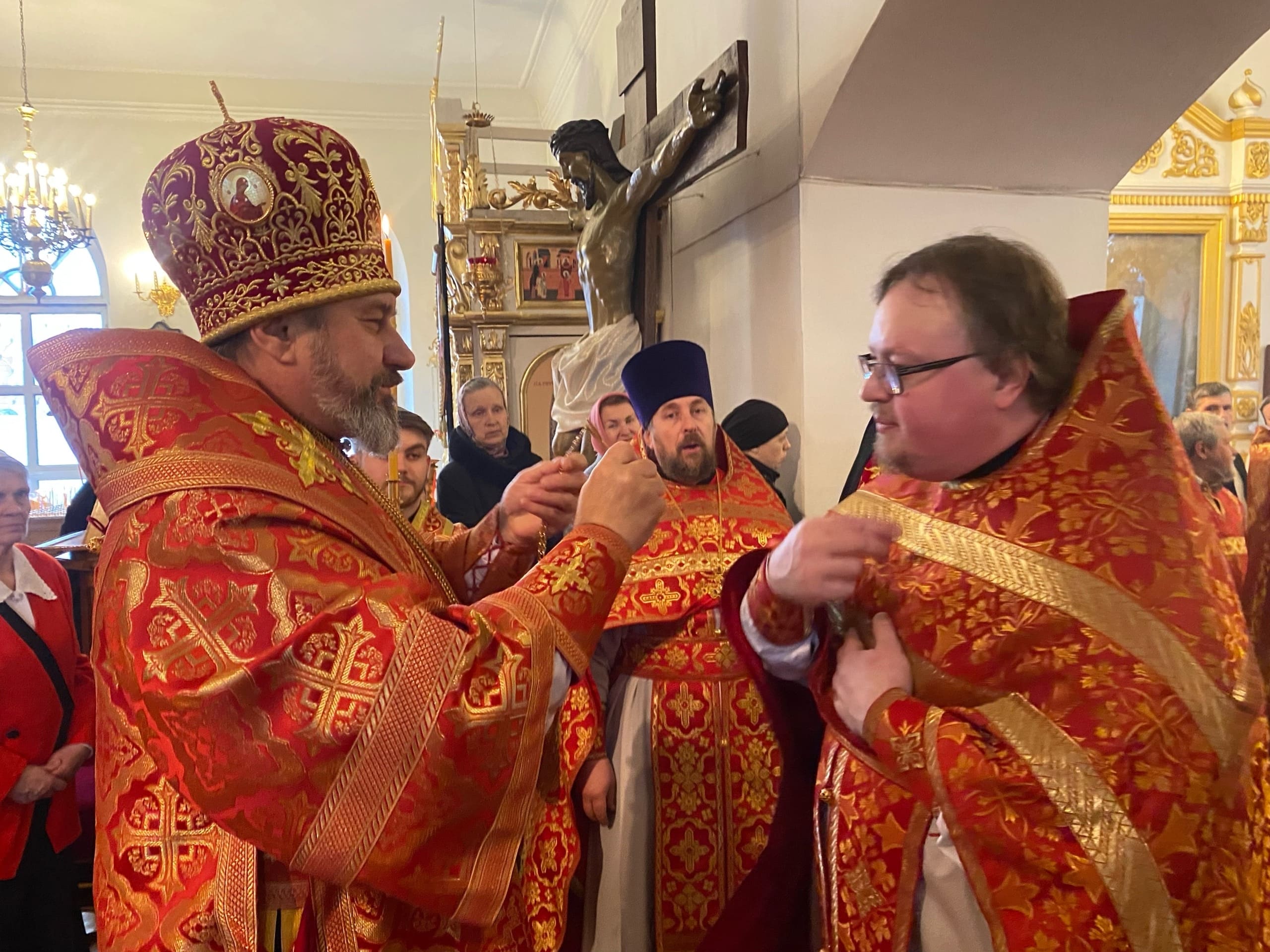 Его Преосвященству сослужили: секретарь епархиального управления иерей Антоний Чуть, благочинный Юрьев-Польского церковного округа протоиерей Сергий Соловьев, настоятель храма протоиерей Георгий Беляков, игумен Серафим (Котенев), а также многочисленное духовенство Юрьев-Польского и монастырского благочиний.