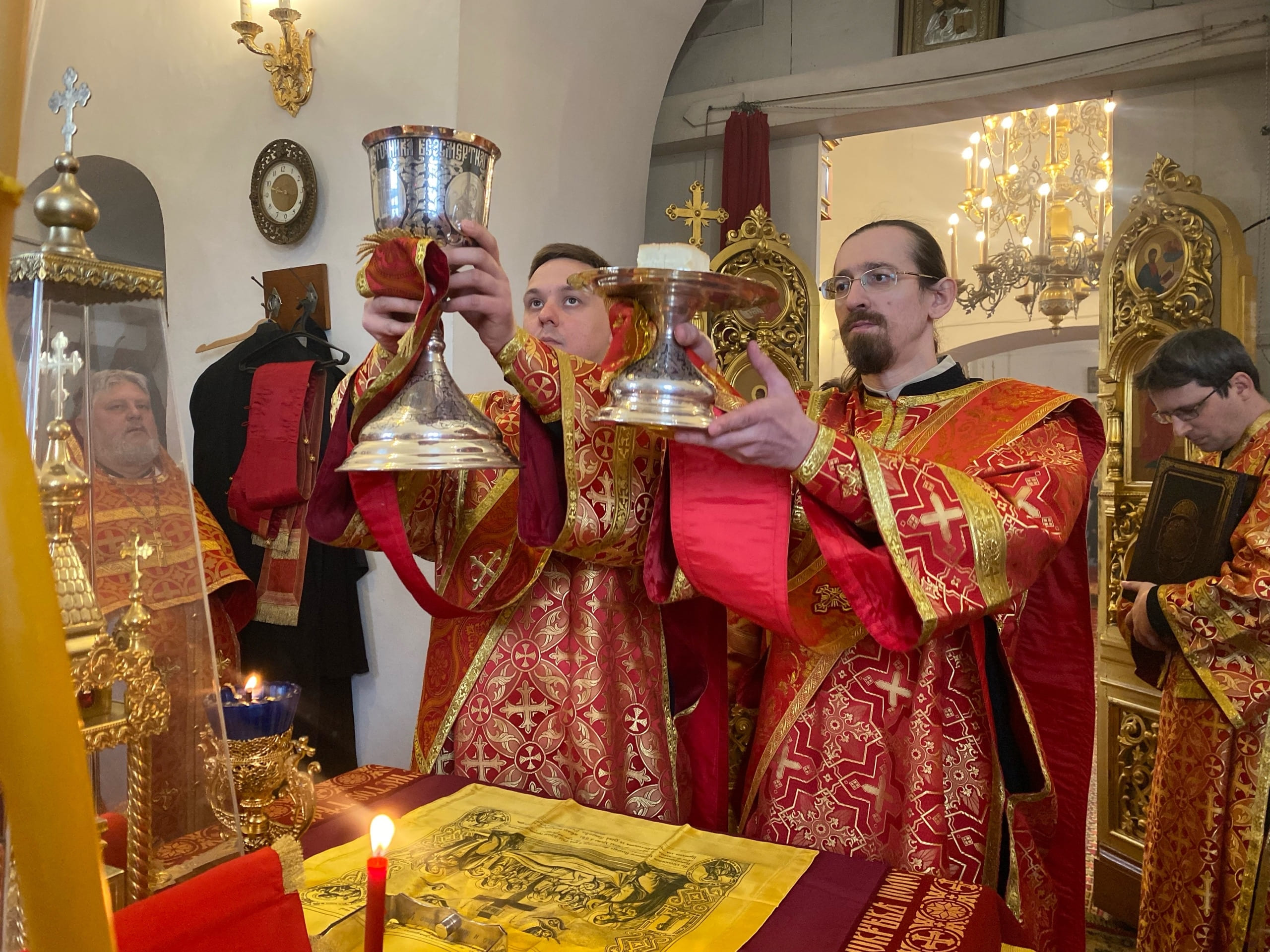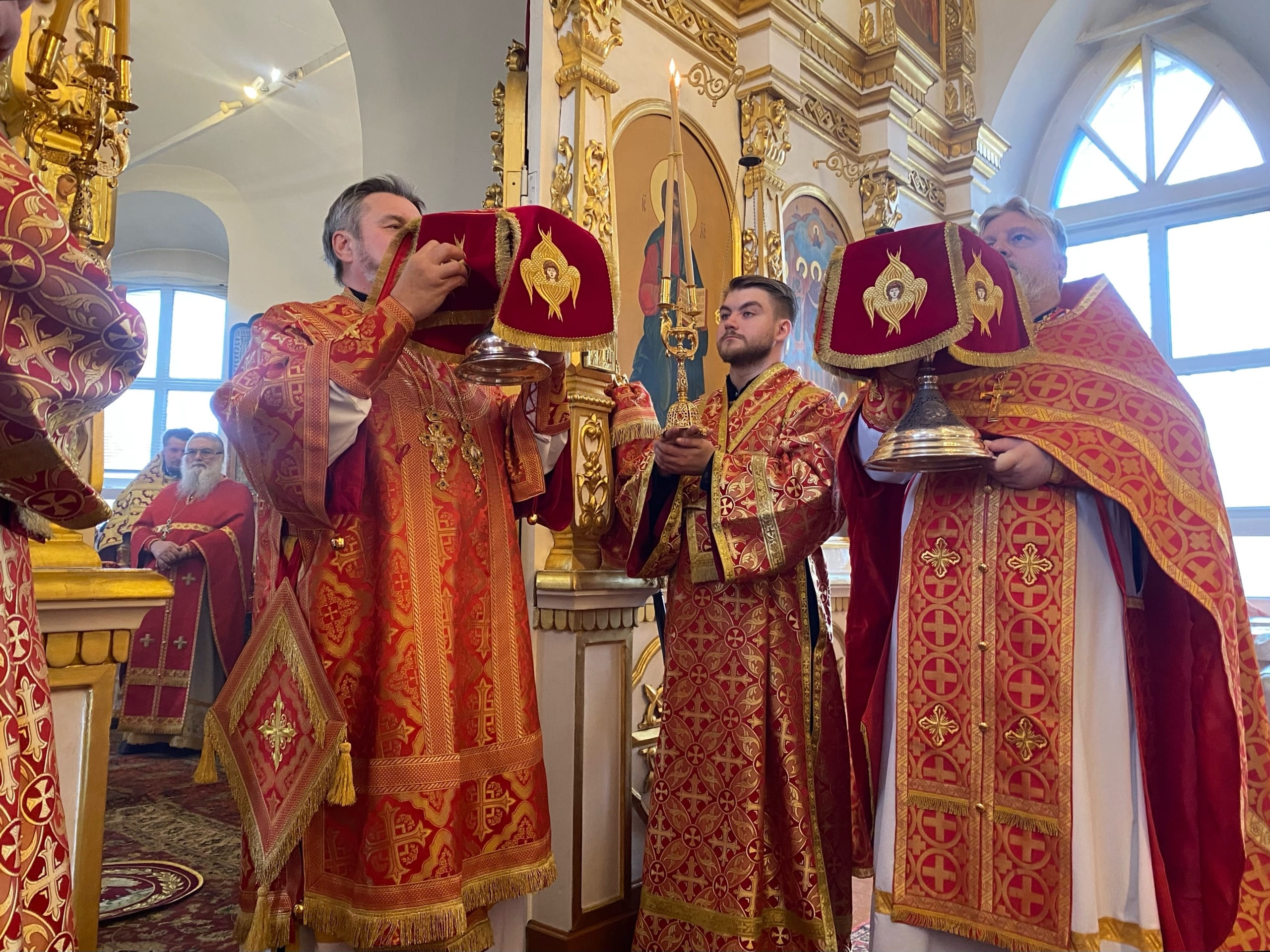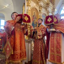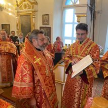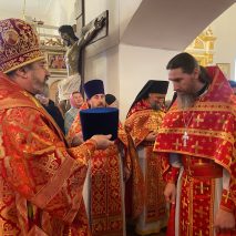 На малом входе ряд клириков, во внимание к усердным трудам во славу Церкви Христовой и празднику Святой Пасхи, был удостоен богослужебно-иерархических наград.