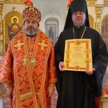 Затем ряд клириков, отмечающих в этом году юбилейные даты, был удостоен епархиальных наград.