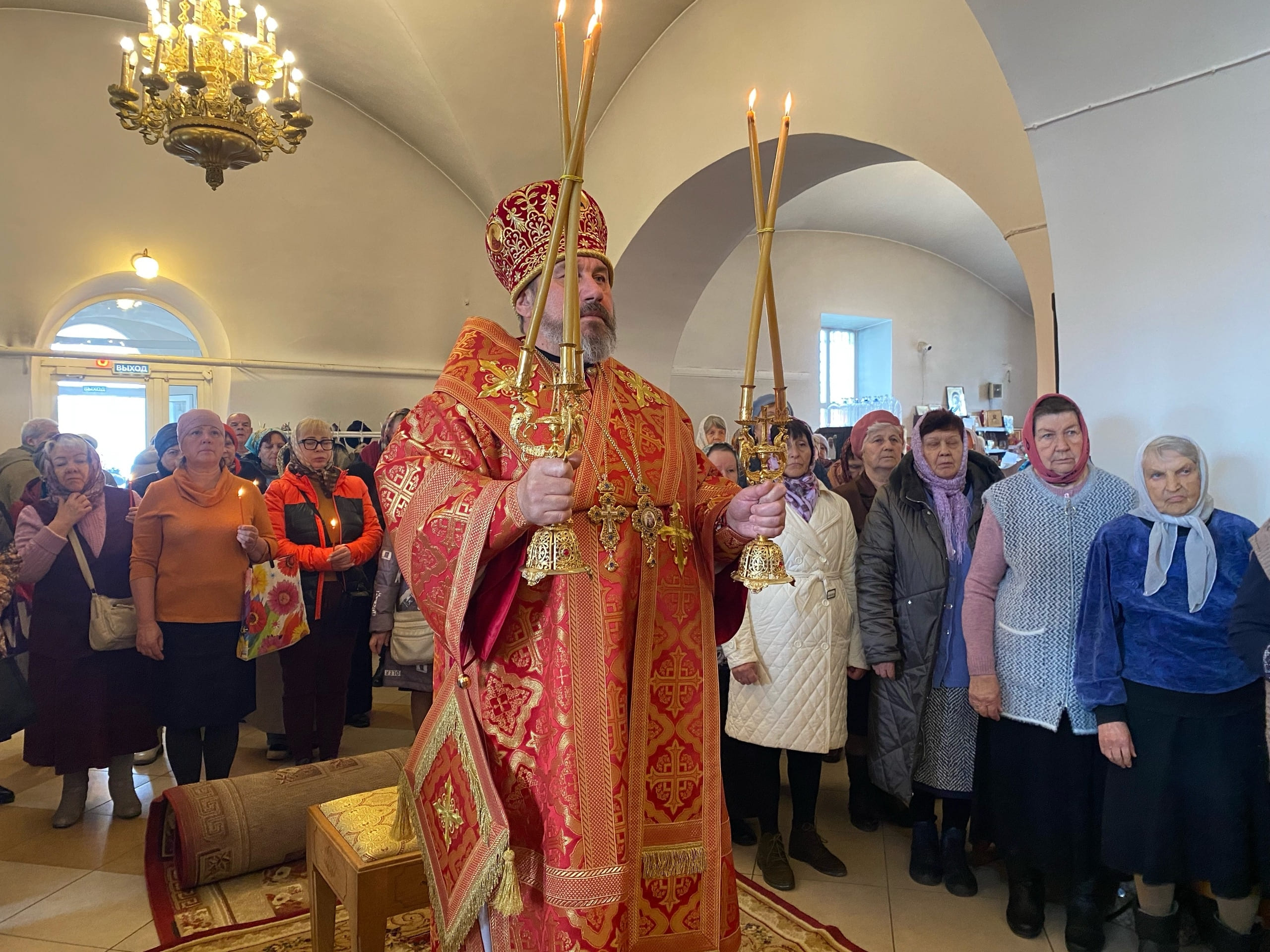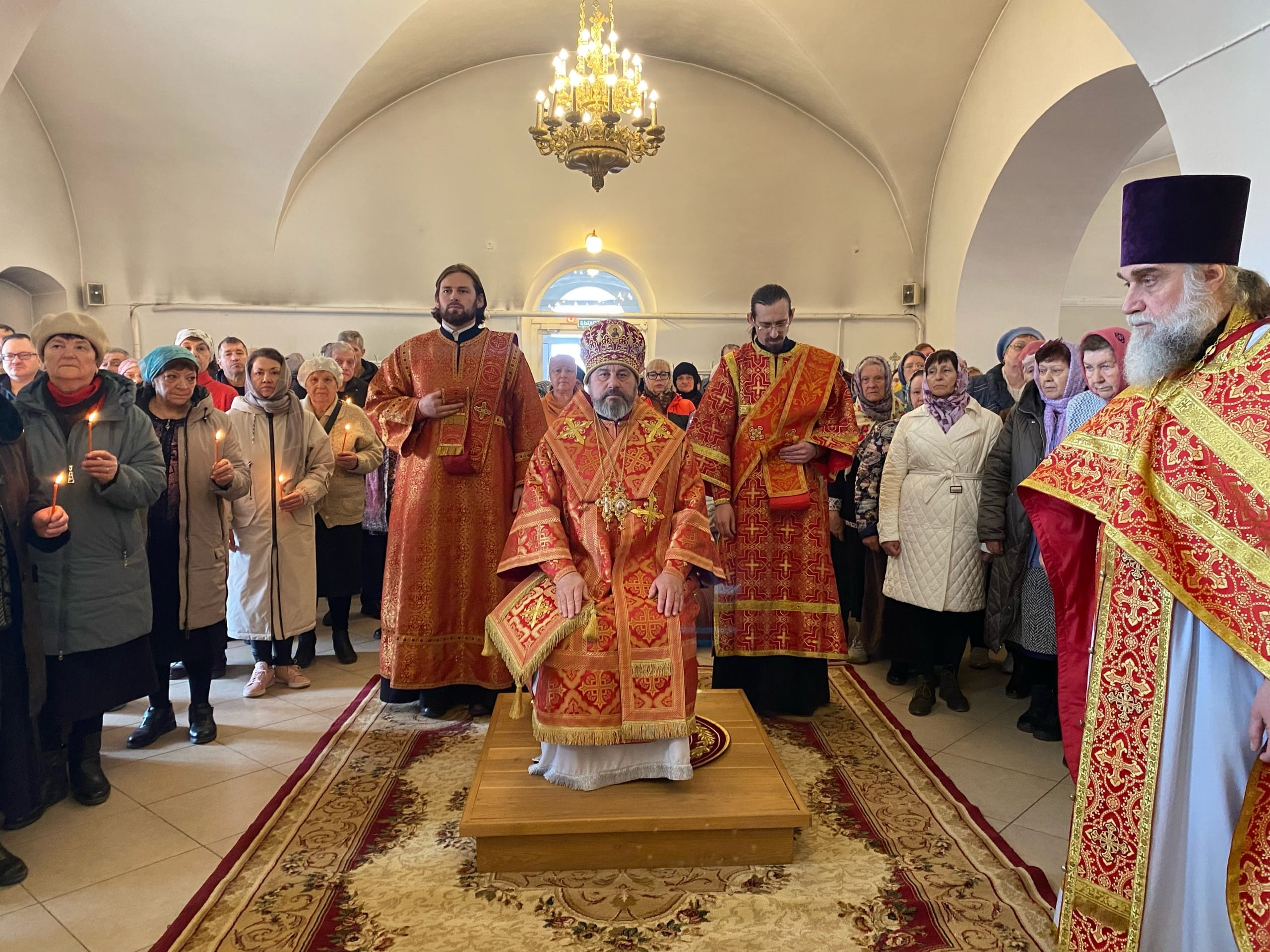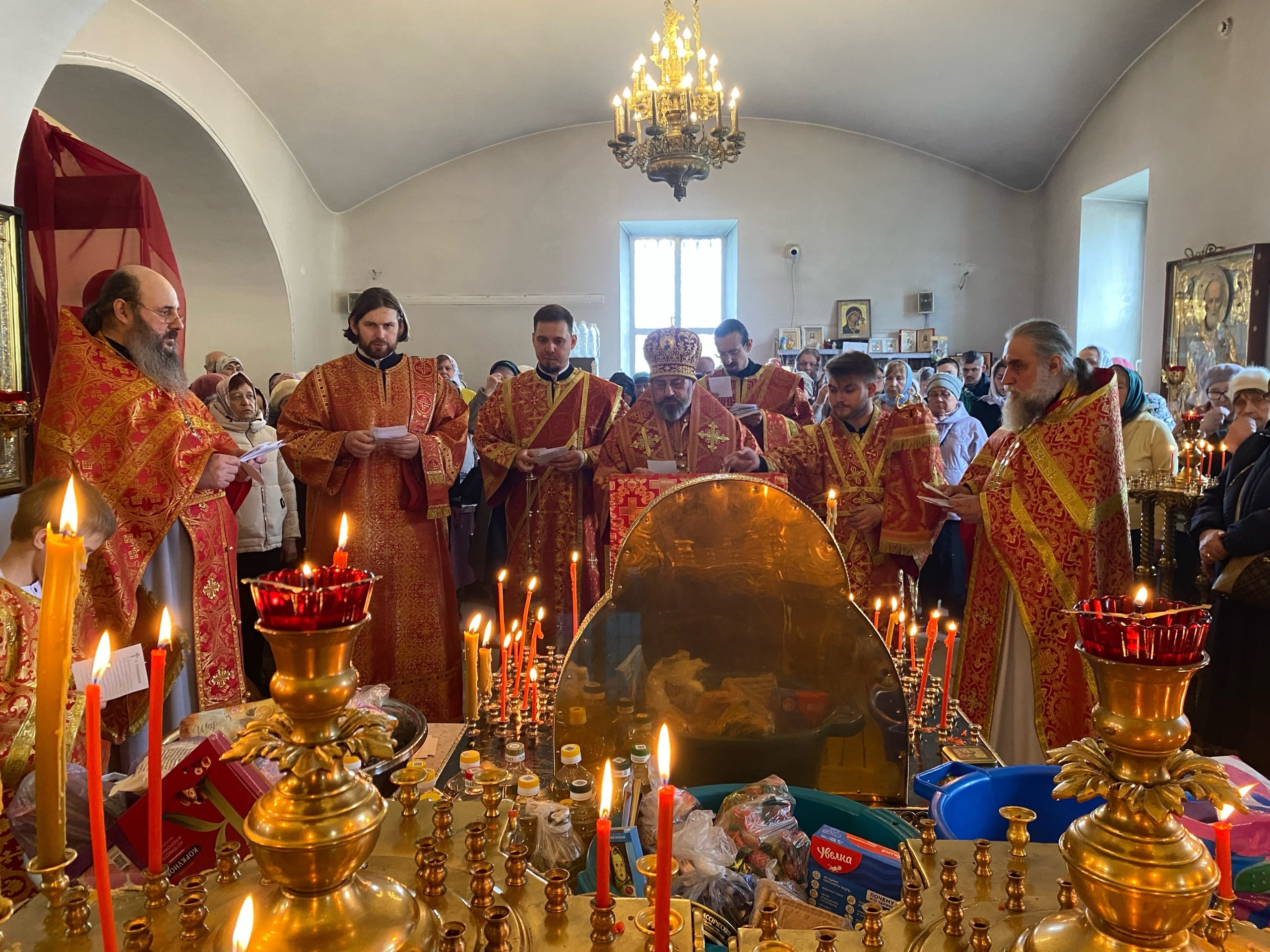Его Преосвященству сослужили: благочинный Кольчугинского церковного округа протоиерей Анатолий Балыкин и протоиерей Игорь Тарасенко.