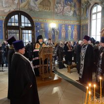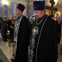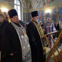 Его Преосвященству сослужили: секретарь епархиального управления иерей Антоний Чуть, протоиерей Олег Турков, протоиерей Георгий Шинкаренко и иерей Виктор Мереуца.
