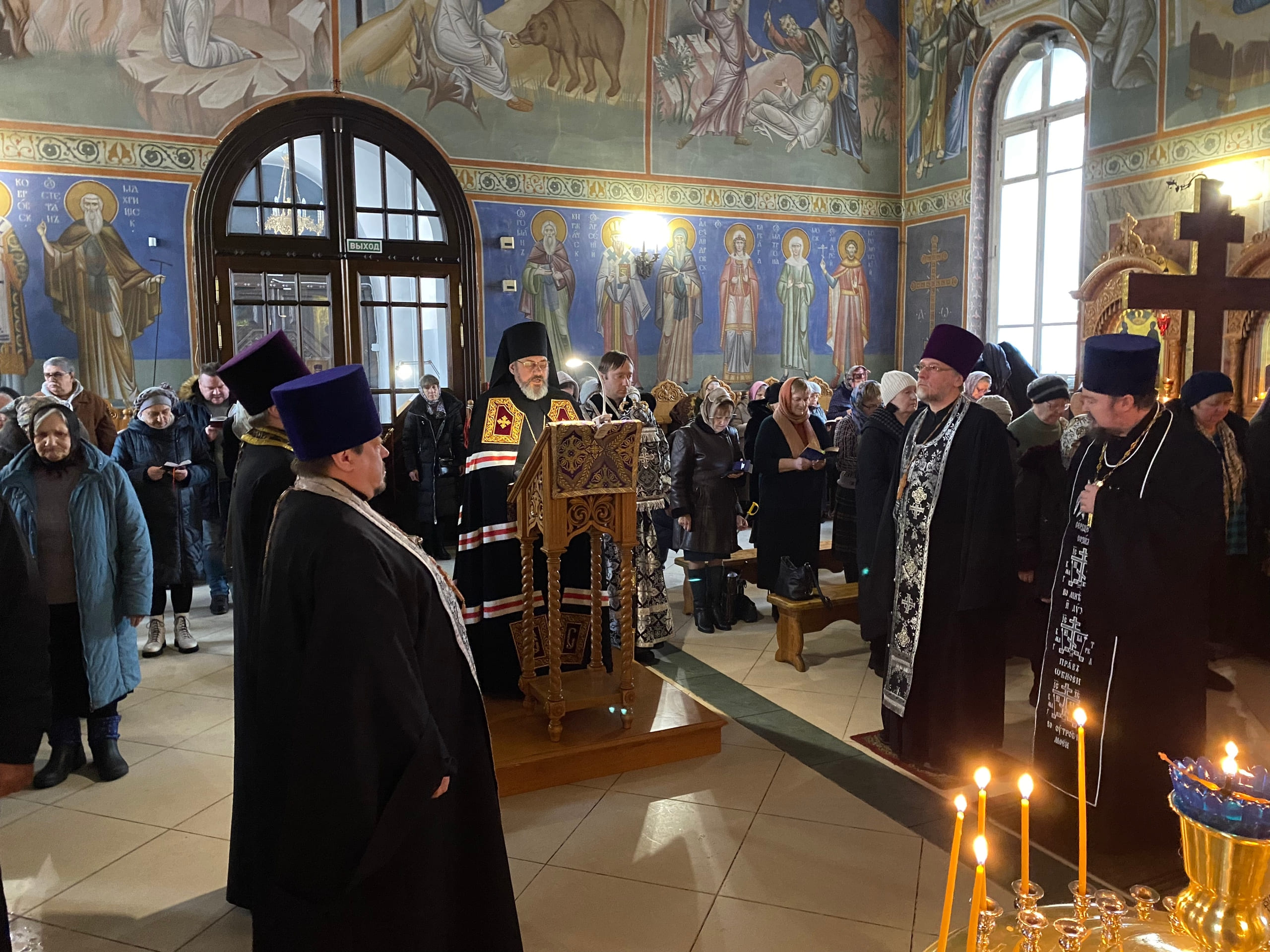 24 февраля 2026 года, во вторник первой седмицы Великого поста, Преосвященный Стефан, епископ Александровский и Юрьев-Польский, совершил Великое повечерие с чтением покаянного канона преподобного Андрея Критского в храме прп. Серафима Саровского г. Александрова