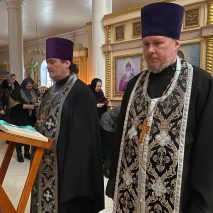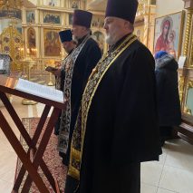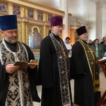 Его Преосвященству сослужили: секретарь епархиального управления иерей Антоний Чуть, настоятель храма иерей Александр Сутырин, иерей Николай Михайленко, иерей Сергий Синюк и иерей Георгий Завильский.